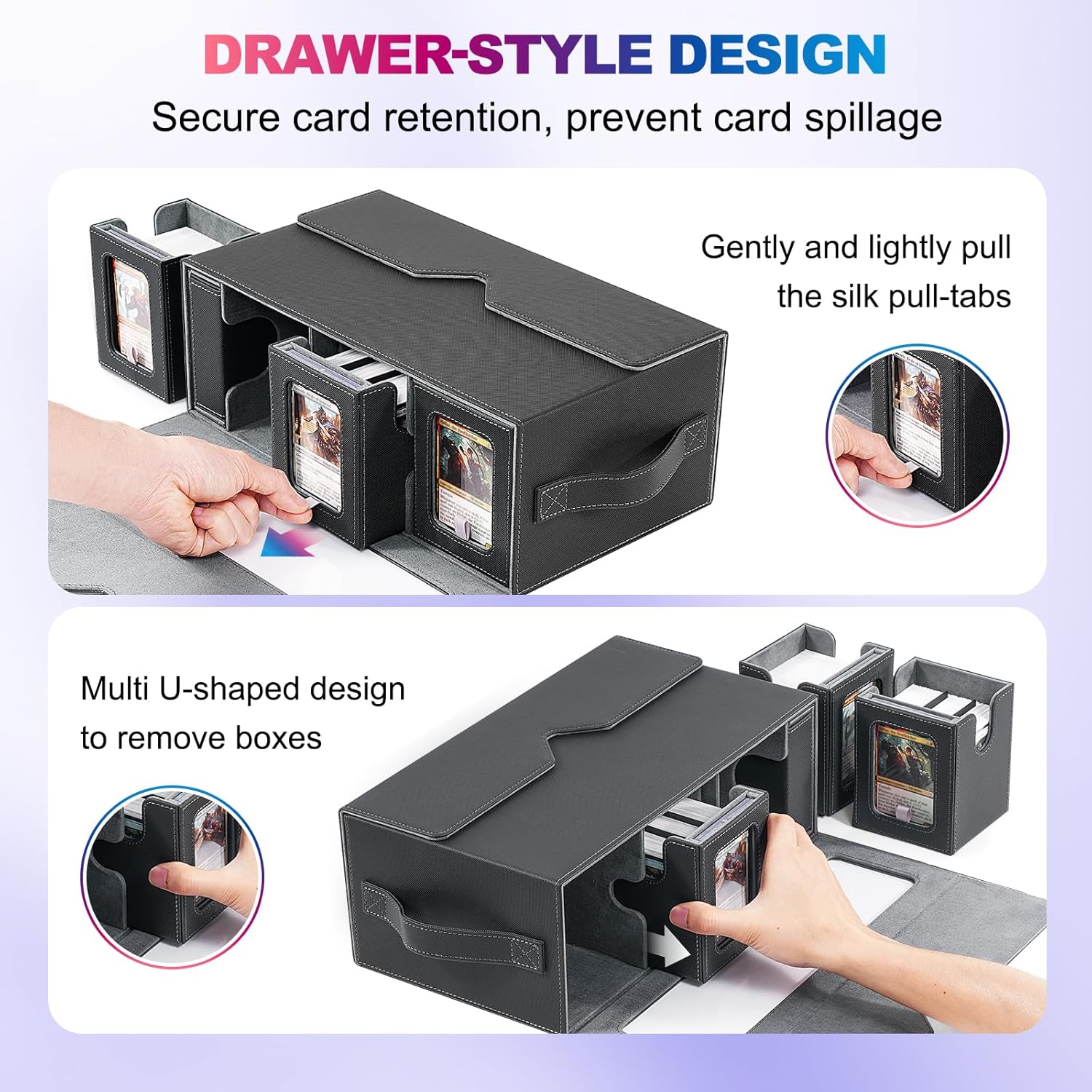 - Practical and Portable: Each modular deck box features a dedicated commander slot equipped with 35PT magnetic card holder for quick identification; The outer storage case includes both a carrying handle and transparent viewing windows on both sides