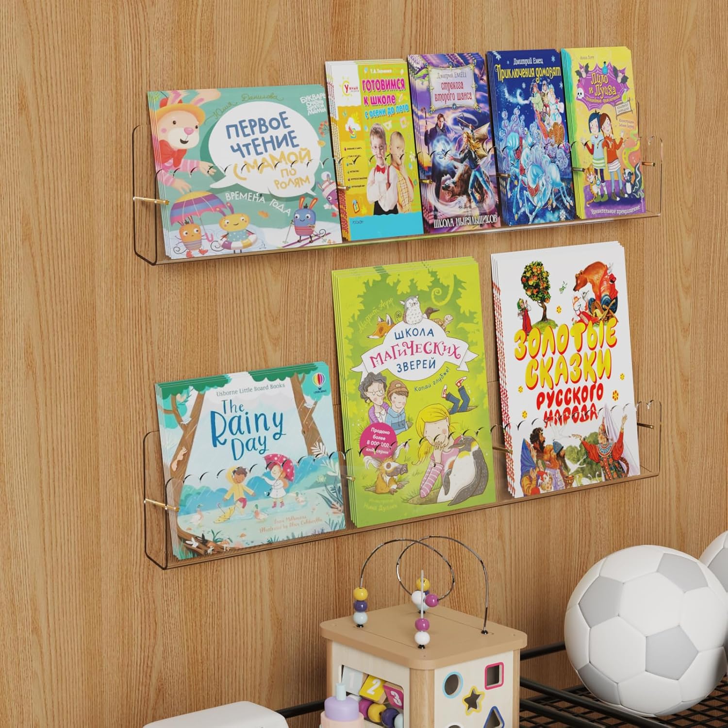 Brochure Holder Wall Mount, 2 Pack Acrylic Modular Flyer with Adjustable Magnetic Golden Bolt, Wavy Lace Pamphlet Display Stand for Organizer Trifold Flyer, Document, Leaflet, 6 Slots