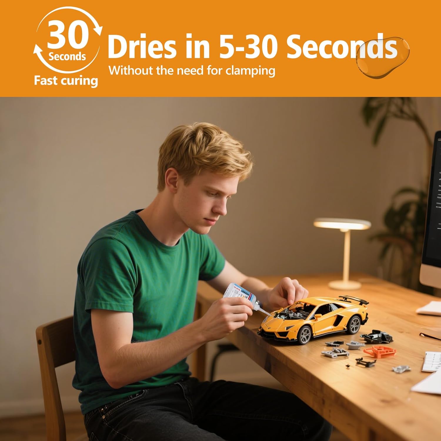 - ⭐Fast And Versatile And Efficient: Instant Plastic glue bonds in just 5-30 seconds,the clear Designed for a broad spectrum of plastics including PVC, ABS, Acrylic, 3D Print, Car, Craft and more, this powerful glue ensures a strong, lasting bond.Ideal for detailed craft work or urgent repairs, our glue ensures a rapid and reliable fix