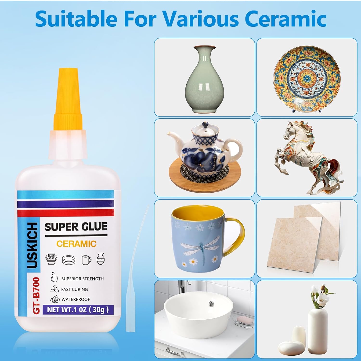- ⭐Fast And Versatile And Efficient: Instant ceramic glue bonds in just 5-30 seconds,our ceramic super clear glue is perfect for all types of ceramic repairs, such as vases, coffee cups, pottery, decorations, ornaments, tea cups, toys, bowls, mugs, urns, statues, dishes, sculptures, pots, marble & more.