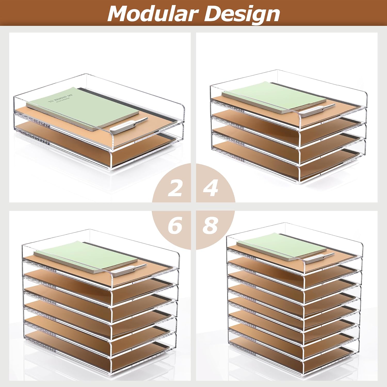 - 【 Acrylic Countertop Organizers Tray】: Contains 4PCS 1 Tier Vertical Tray , Stake any Layer Together in A Second, Great for Holding Letter/A4 Size Paper, Folders, Stationary, Desk Accessories Tray.