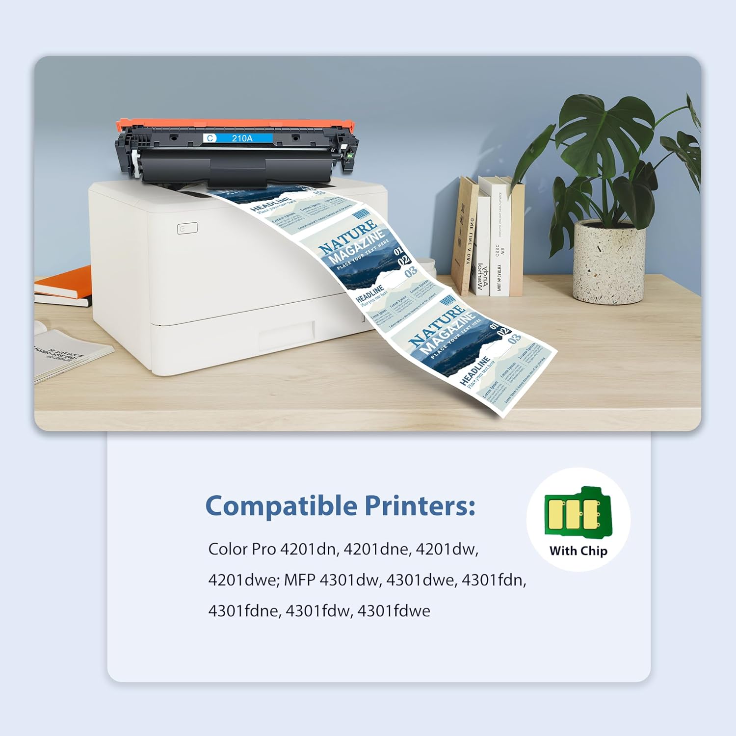 - Comprehensive Compatibility: Compatible with Color LaserJet Pro 4201dn, 4201dne, 4201dw, 4201dwe; Color LaserJet Pro MFP 4301dw, 4301dwe, 4301fdn, 4301fdne, 4301fdw, 4301fdwe, replacement for 210A Toner Cartridge. Compatible Replacement for 210A W2100A.