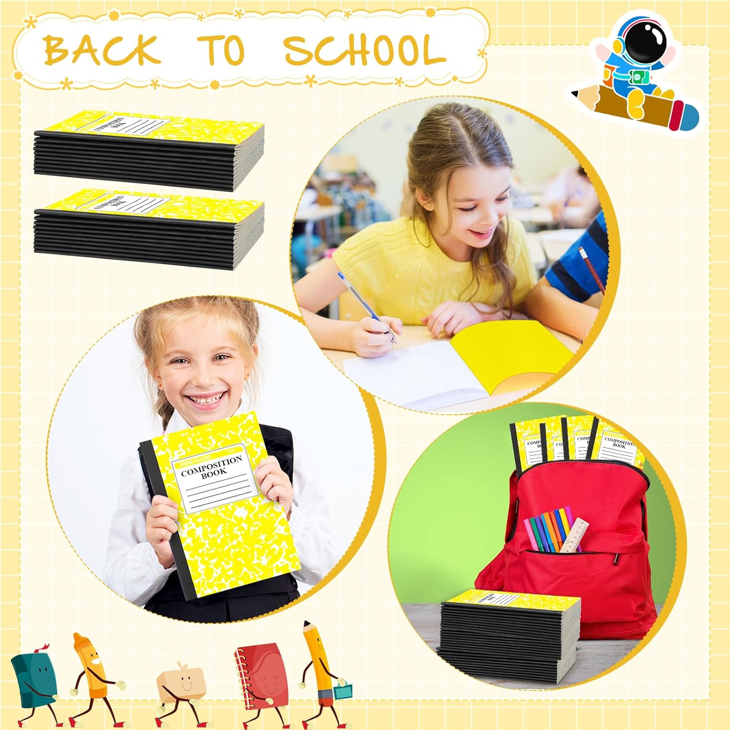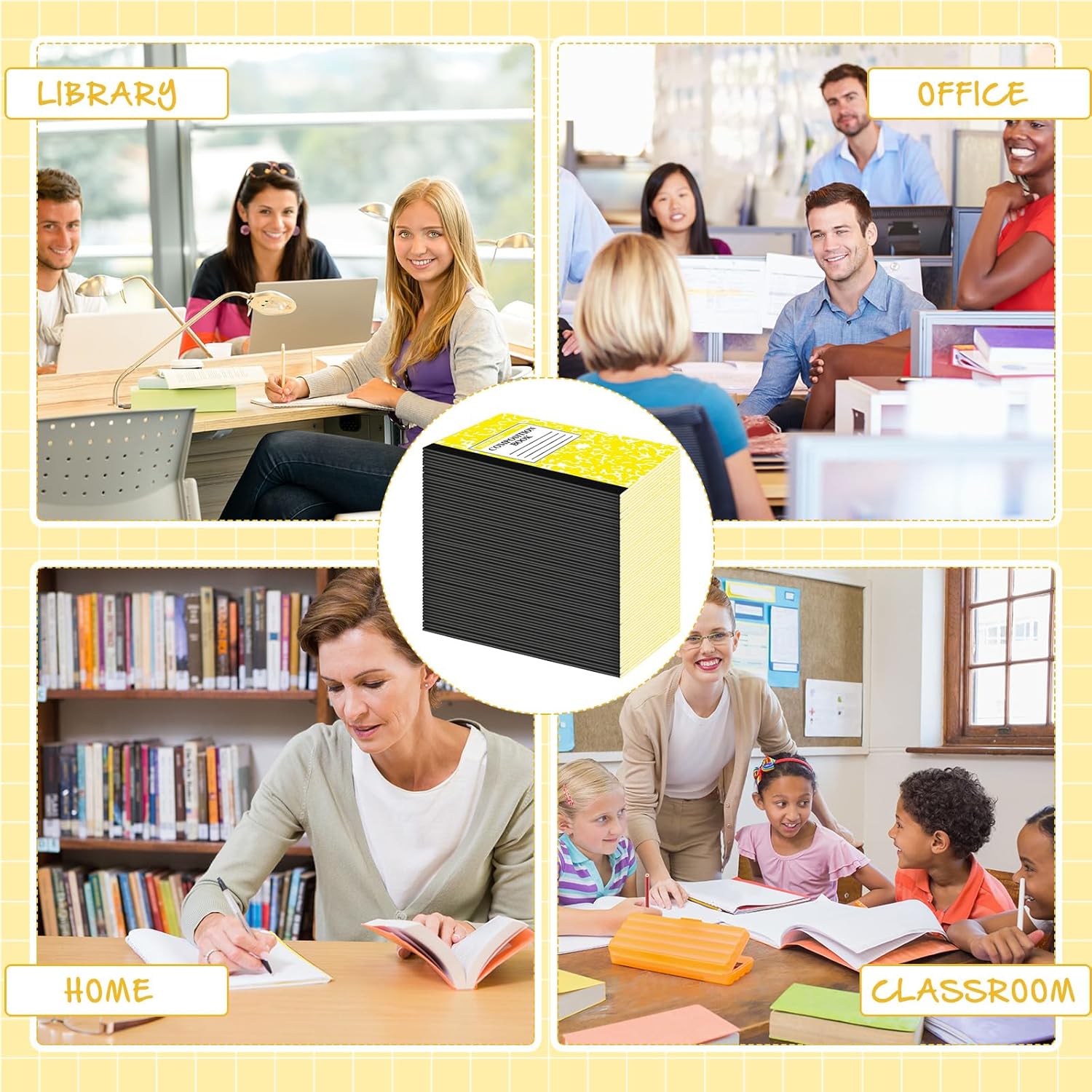 - Sufficient Quantity: you will get 100 pack composition notebooks bulk in yellow colors, measuring approximately 8.2 x 5.5 inches; The classic composition will safeguard your important notes, and the sufficient quantity and colors will meet your needs for use and replacement