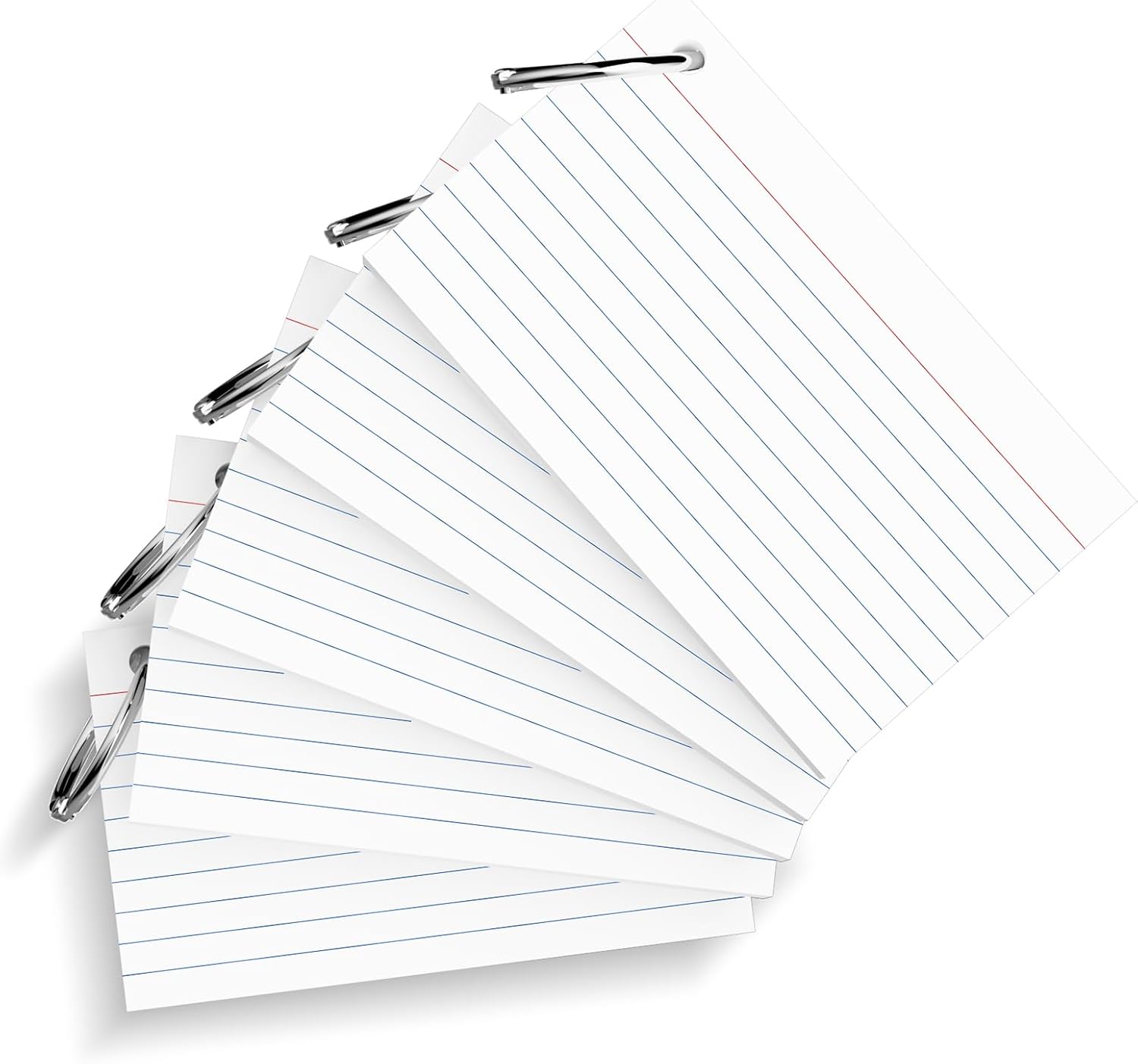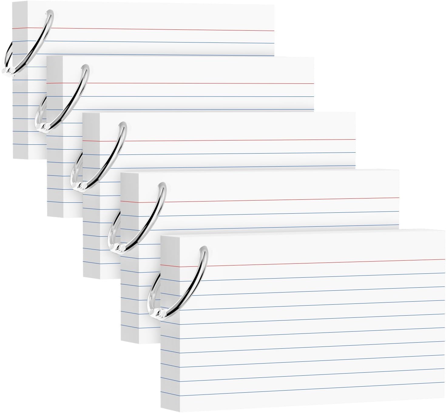 250 Count White Index Cards 3x5 Inch with Key Ring, 180gsm Heavyweight Flash Card (50 Sheets Each), Durable & Portable Note Taking for Students, Teachers, Study Note Cards for Office Home School