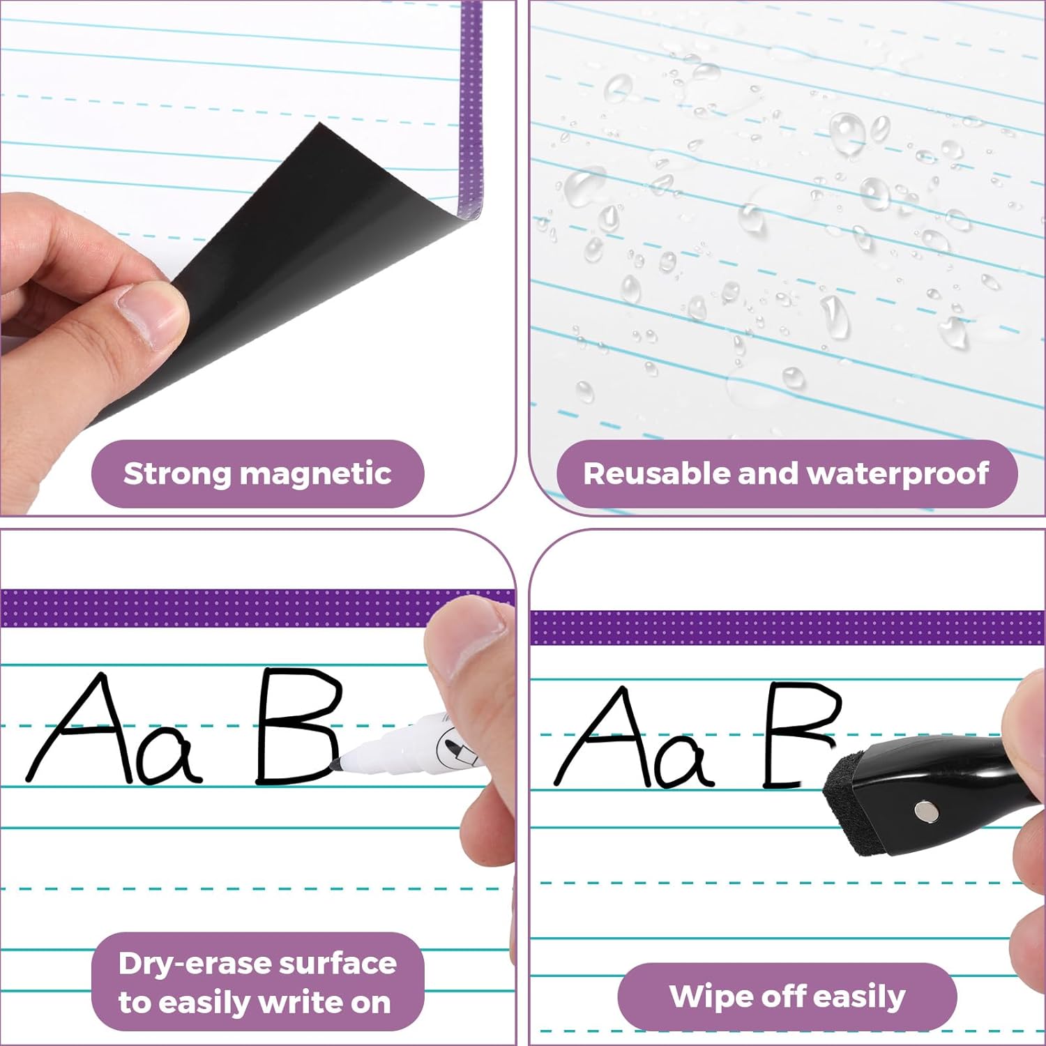 - Large Size Magnetic Dry Erase Whiteboard Sheet: Dry erase paper measures 17"x22" and 1.3"(32.8mm) spacing between the horizontal lines and offers plenty of space for handwriting or graphing to easily see at a distance. The Dry erase magnets set is great for teachers to making classroom demonstrations