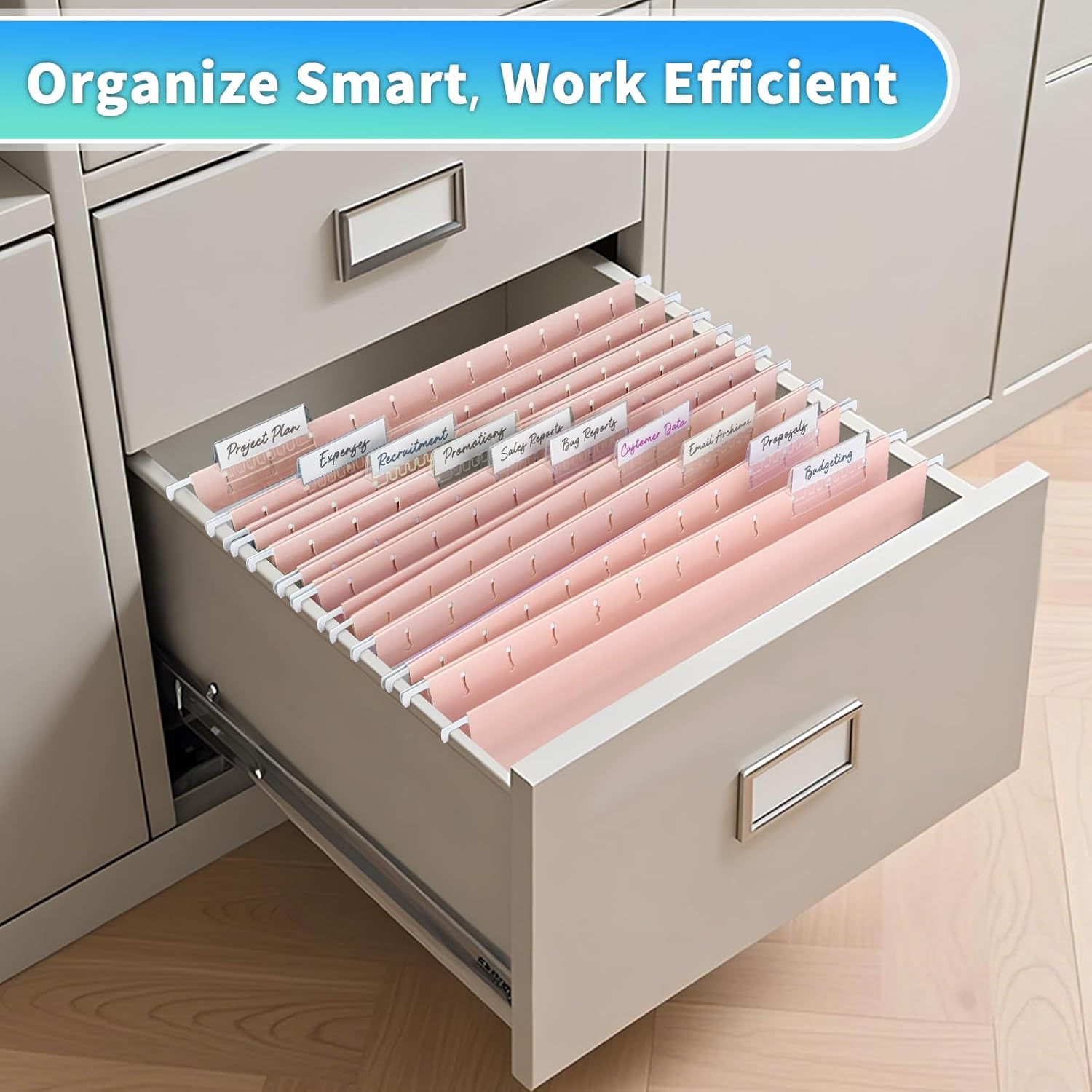 25-Pack Pink Hanging File Folders, Letter Size (8.5" x 11") with 1/5-Cut Tabs,25 Transparent Label Cards & 25 Sticker Labelsfor Home & Office Organization
