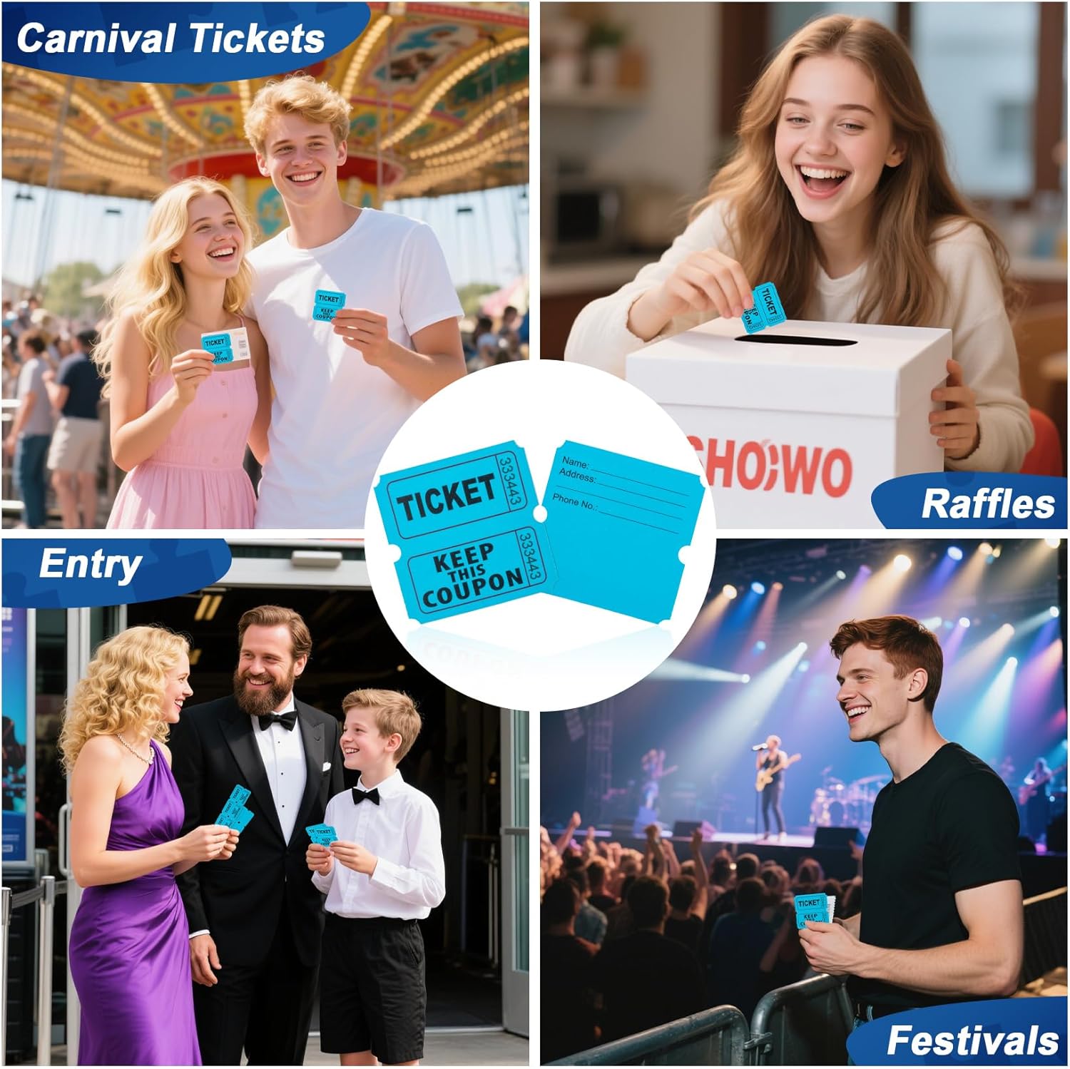 - What You Get: You will get 200pcs 2" x 2" double tickets in blue, can be separated into two 1" x 2" portions. These 50/50 tickets can make your party more organized and orderly, and also bring more fun and joy to your party