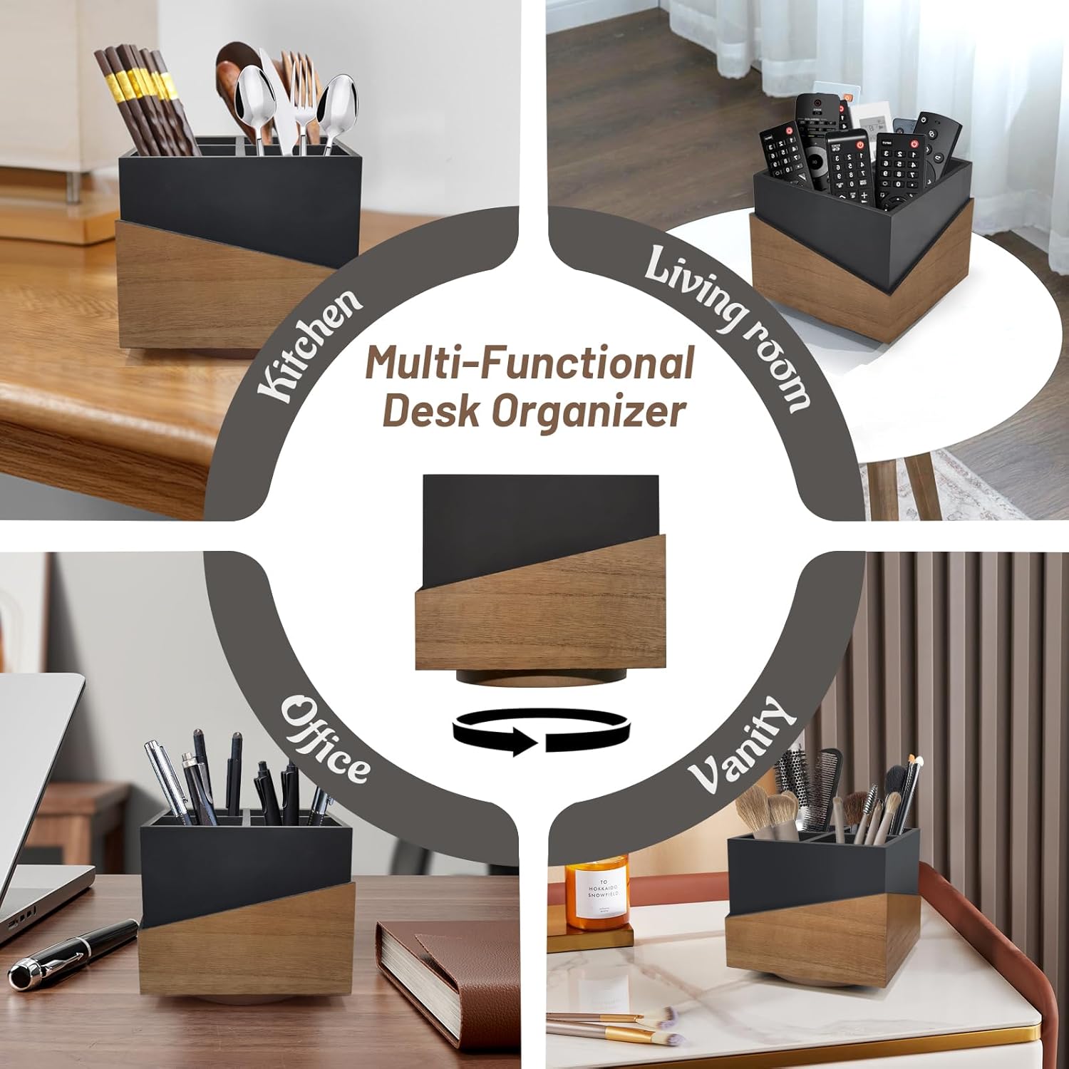 - 【360° Smooth-Rotating Desk Organizer】 Upgrade your workspace with effortless access! This spinning desk organizer spins smoothly 360°— grab pens, scissors, or markers without rummaging. Perfect for multitaskers and students—no more wasted time searching for supplies