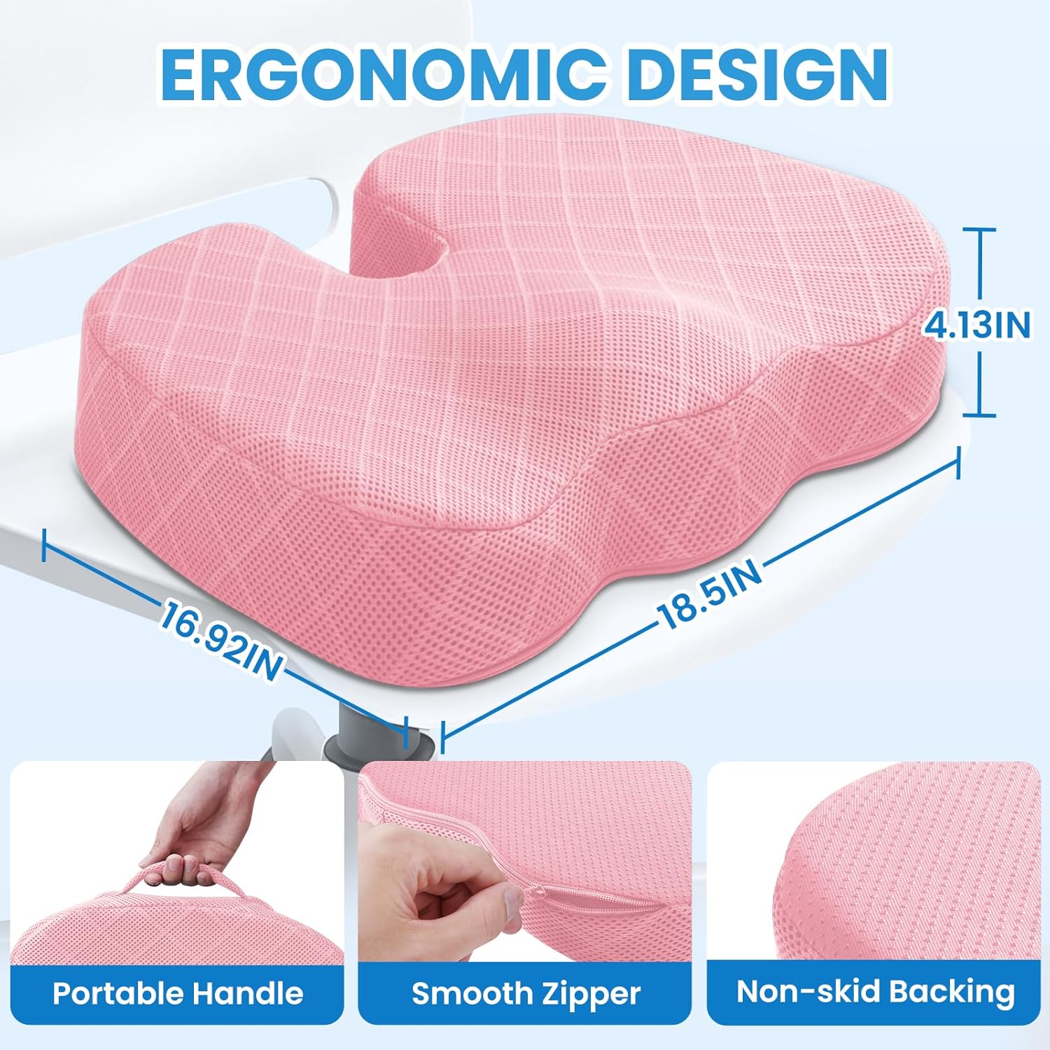 TushGuard Office/Car Seat Cushion, Non-Slip Sciatica & Back Coccyx Tailbone Pain Relief Chair Pad, Memory Foam Butt Pillow for Computer Desk, Wheelchair, Driving (Pink, XX-Large)
