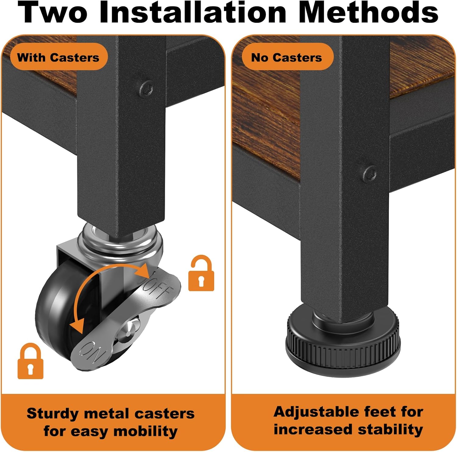 - 【Two Installation Choices】The office stand can be used with or without wheels. Not only does it make it easy to move the printer around without having to manually lift it, but it also makes it easy to clean underneath the 3-tier dual printer stand.