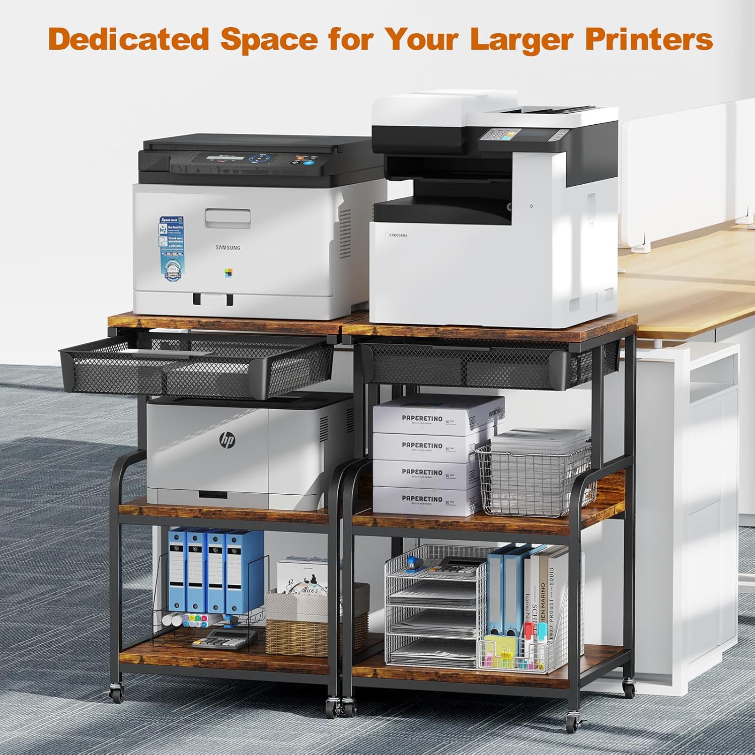 - 【Mesh Drawer Storage】The office printer stand features a mesh drawer storage system, offering a ventilated and durable space to organize office supplies like paper, ink cartridges, or cables. This design prevents clutter while keeping items visible and accessible, making it an ideal printer desk for home office setups.