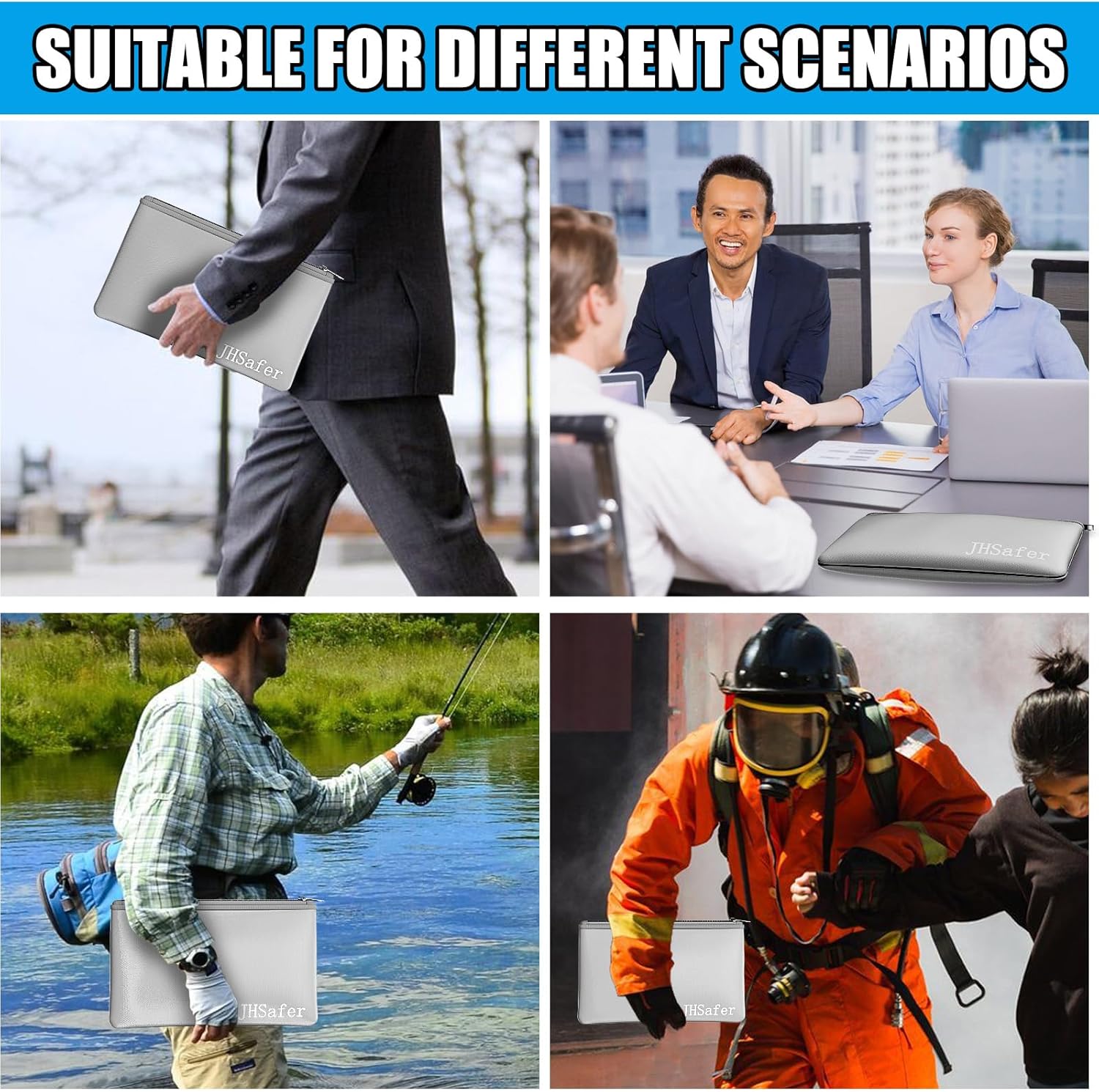 6400℉ Fireproof and Waterproof Money Bags 2pcs with Zipper,11''x6.3'' Fireproof Cash Bag with Zipper,Fireproof Wallet Envelope Safe Pouch Fireproof Bags for Cash Passports Keys Jewellery (Silver)