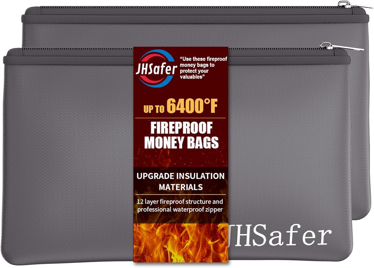 6400℉ Fireproof and Waterproof Money Bags 2pcs with Zipper,11''x6.3'' Fireproof Cash Bag with Zipper,Fireproof Wallet Envelope Safe Pouch Fireproof Bags for Cash Passports Keys Jewellery (Gray)