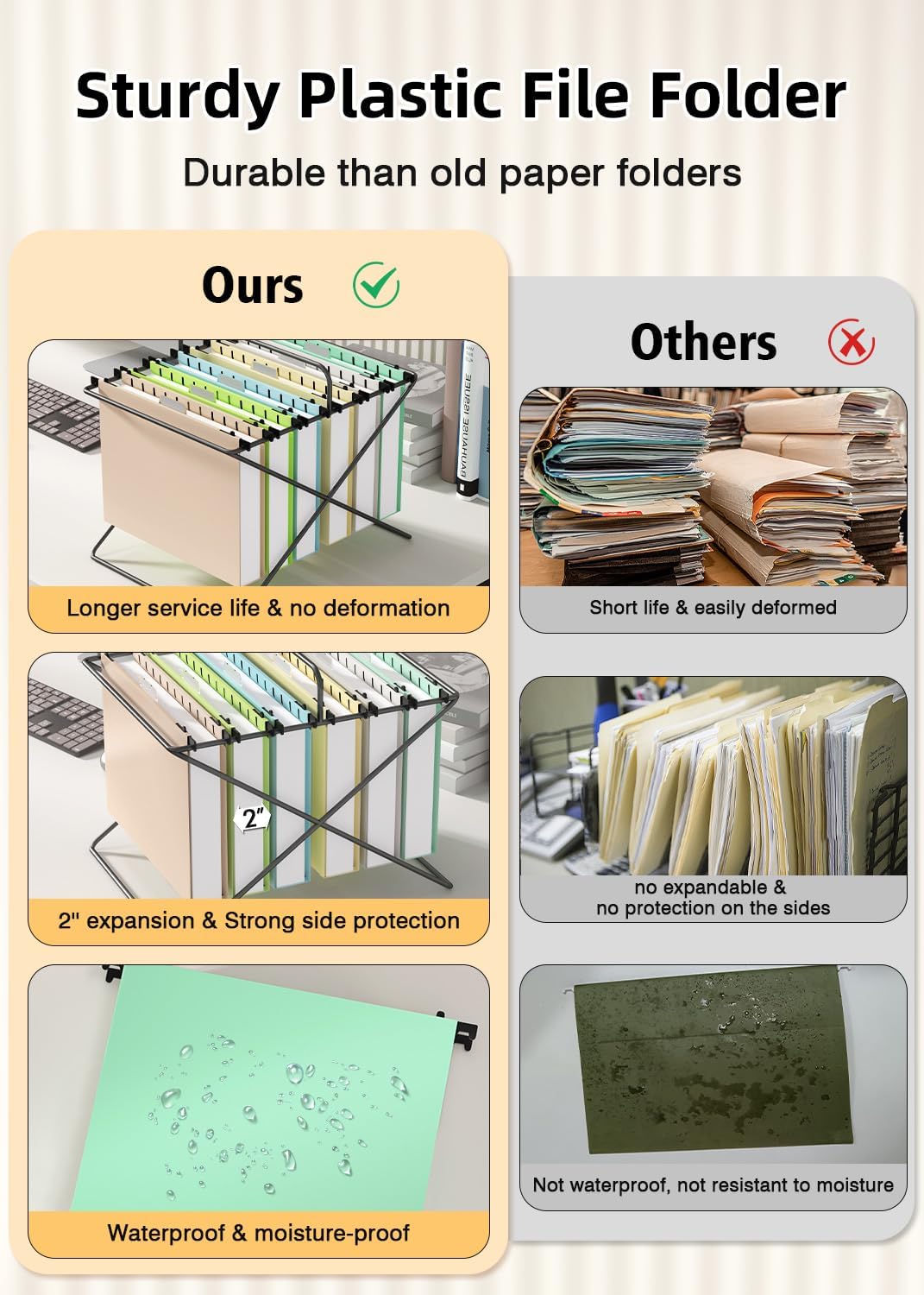 - 【PLASTIC HANGING FILE FOLDER】: The heavy duty hanging file folder is made of PP plastic, sturdy & tear resistant, not easily dirty, and has a longer usage time compared to paper materials