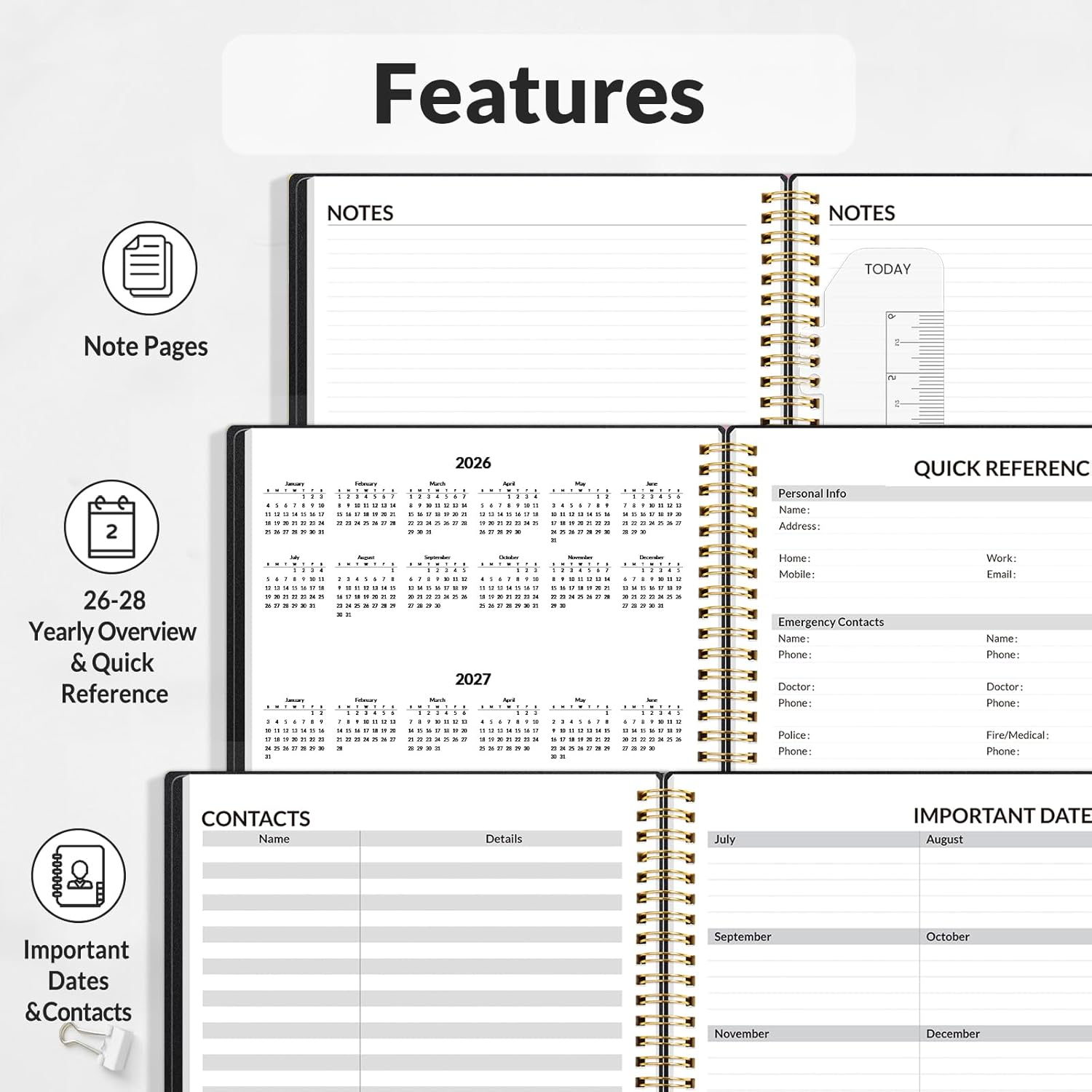 SUNEE 2026 Weekly and Monthly Planner - from January 2026 - December 2026, 8.5"x11" Daily Agenda Planner with Monthly Tab, Flexible Cover, Note Pages, Pockets, Bookmark, Spiral Binding, Black