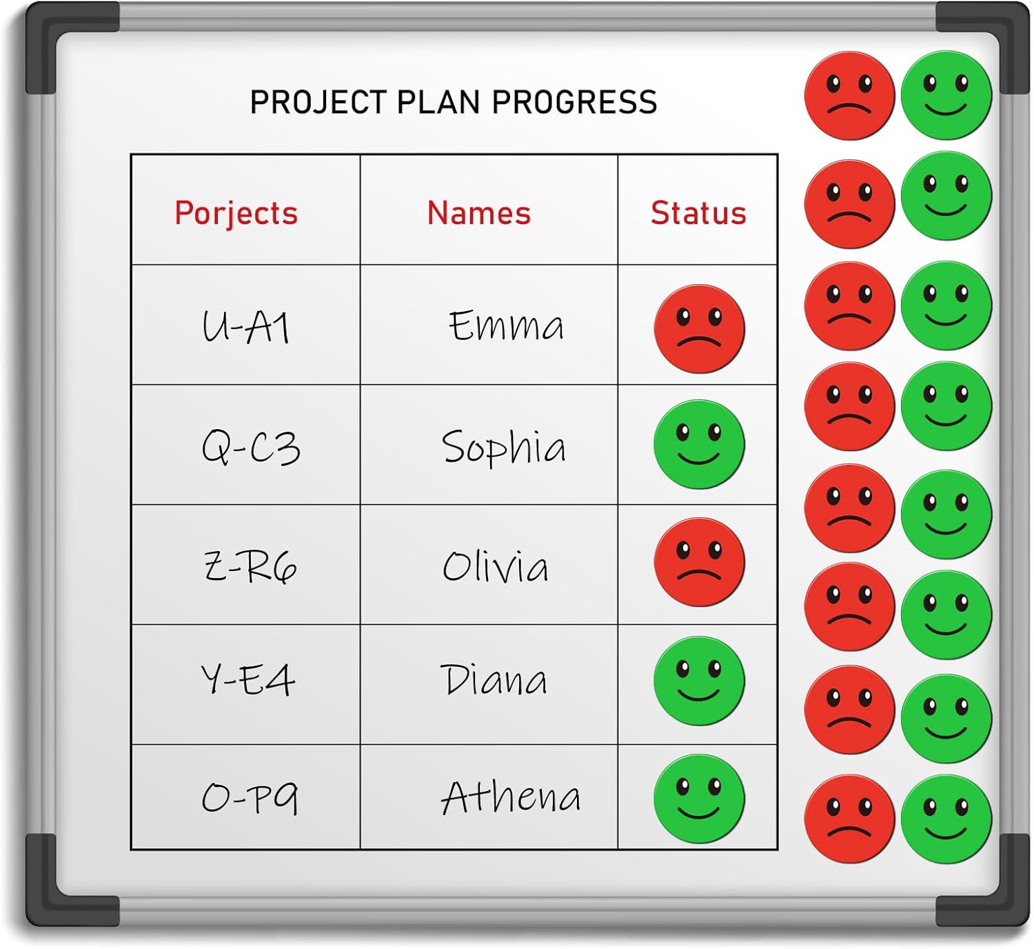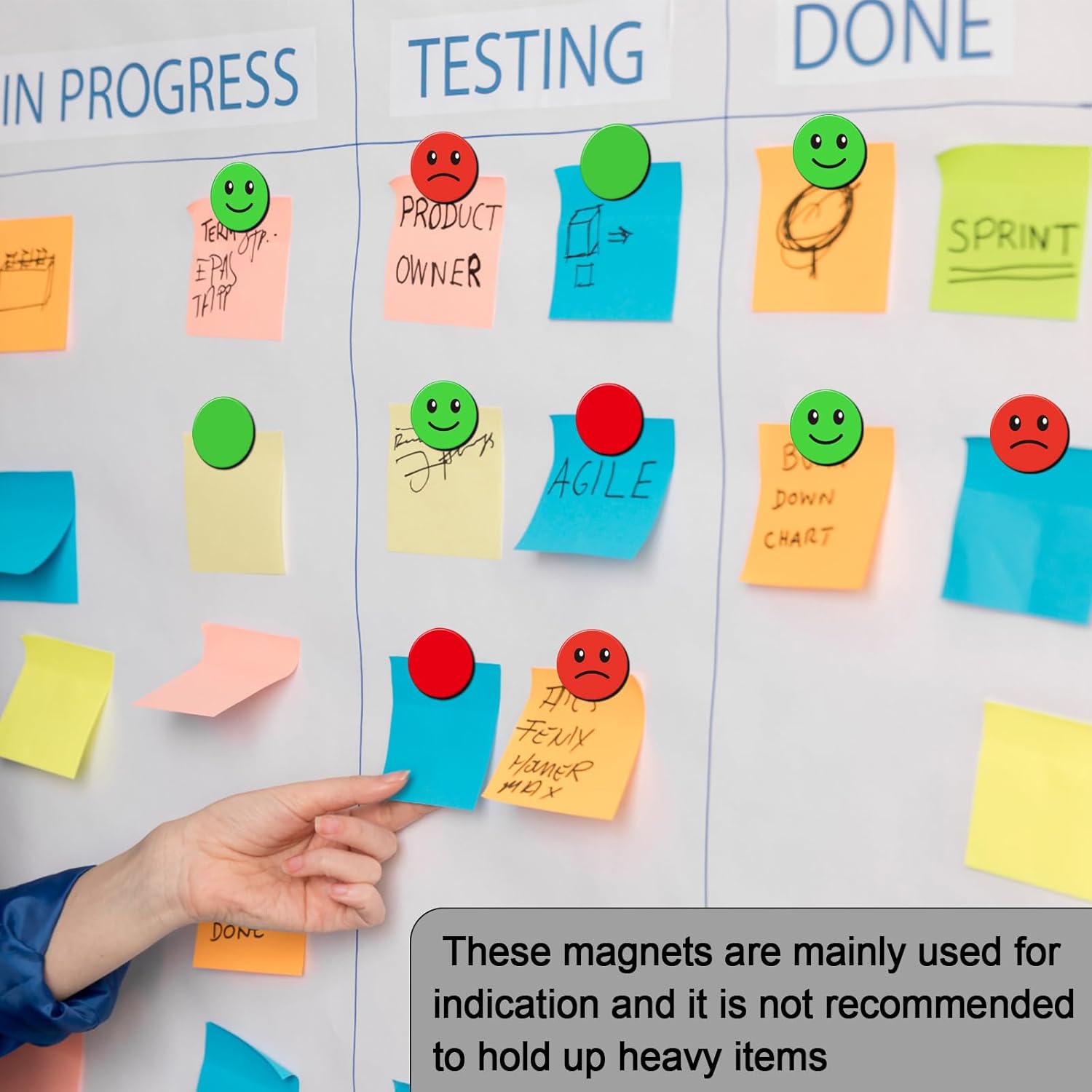 25 Pcs 1” Double-Sided Red Green Smiley Face Magnets, Flip Over Colored Magnetic Dots for Whiteboard, Refrigerator, Office (25, Happy/Sad-Colors)