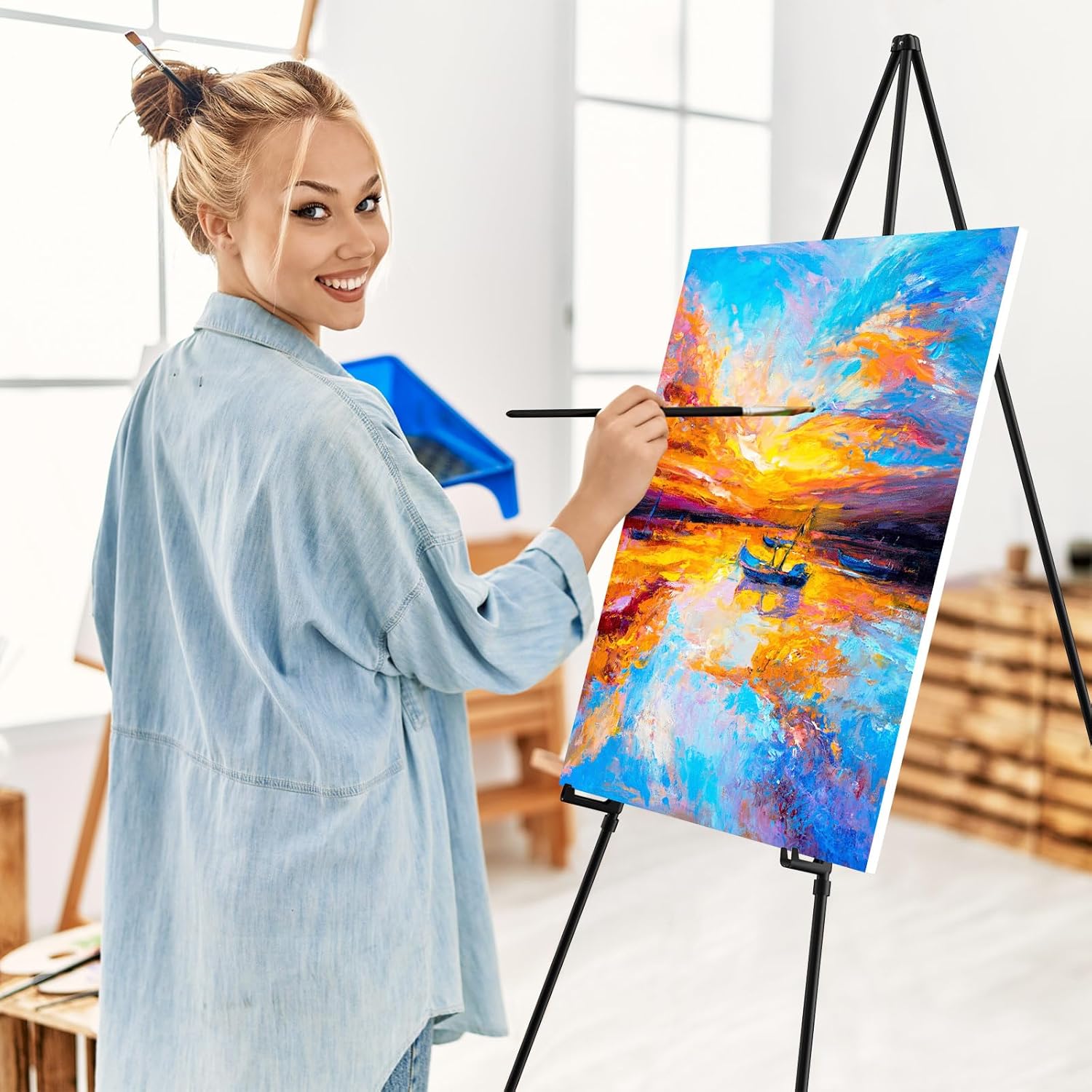 - 【Sturdy Metal Construction】Made of durable metal, this easel for painting and signs safely supports posters, canvases, or whiteboards (max 10 lbs). Ideal for weddings, offices, classrooms, or outdoor events.