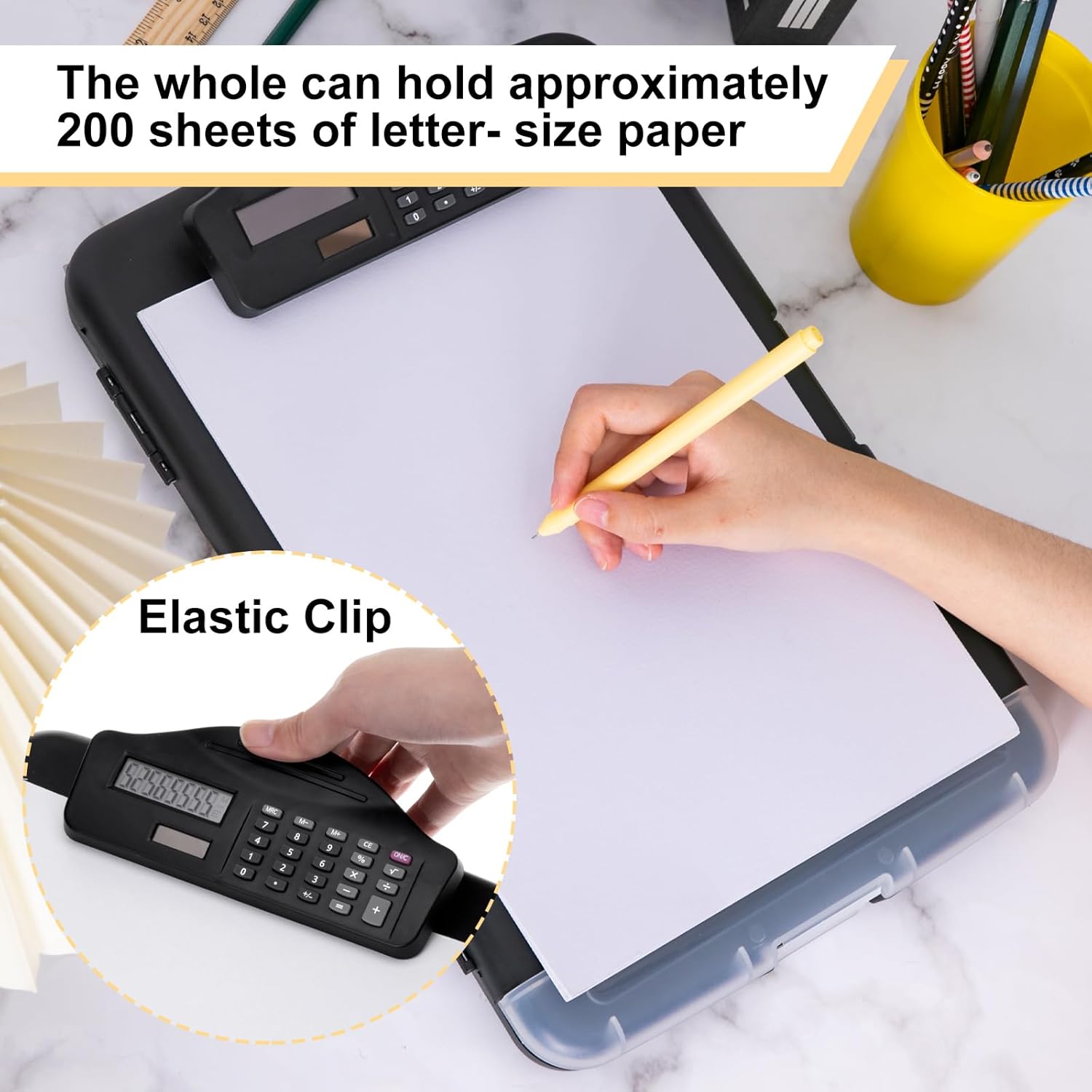 - Package Information: you will get 1 pieces of plastic storage clipboards, with the calculator, can hold 200 letter size papers; And you can calculate at any time while using, which will bring you convenience