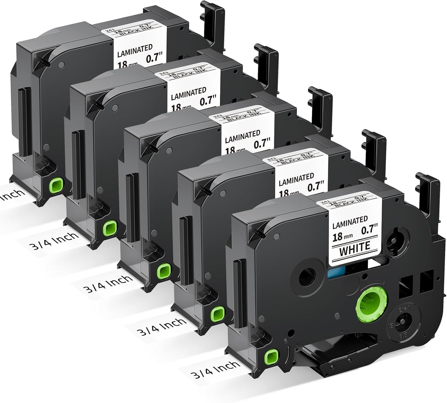 Label KINGDOM TZe-241 18mm Label Maker Tape Compatible with Brother PTouch, TZ Tape 18mm 0.7" Laminated White for Label Maker PT-D410 D400 PT-D600 PT-D610BT, 5 Pack