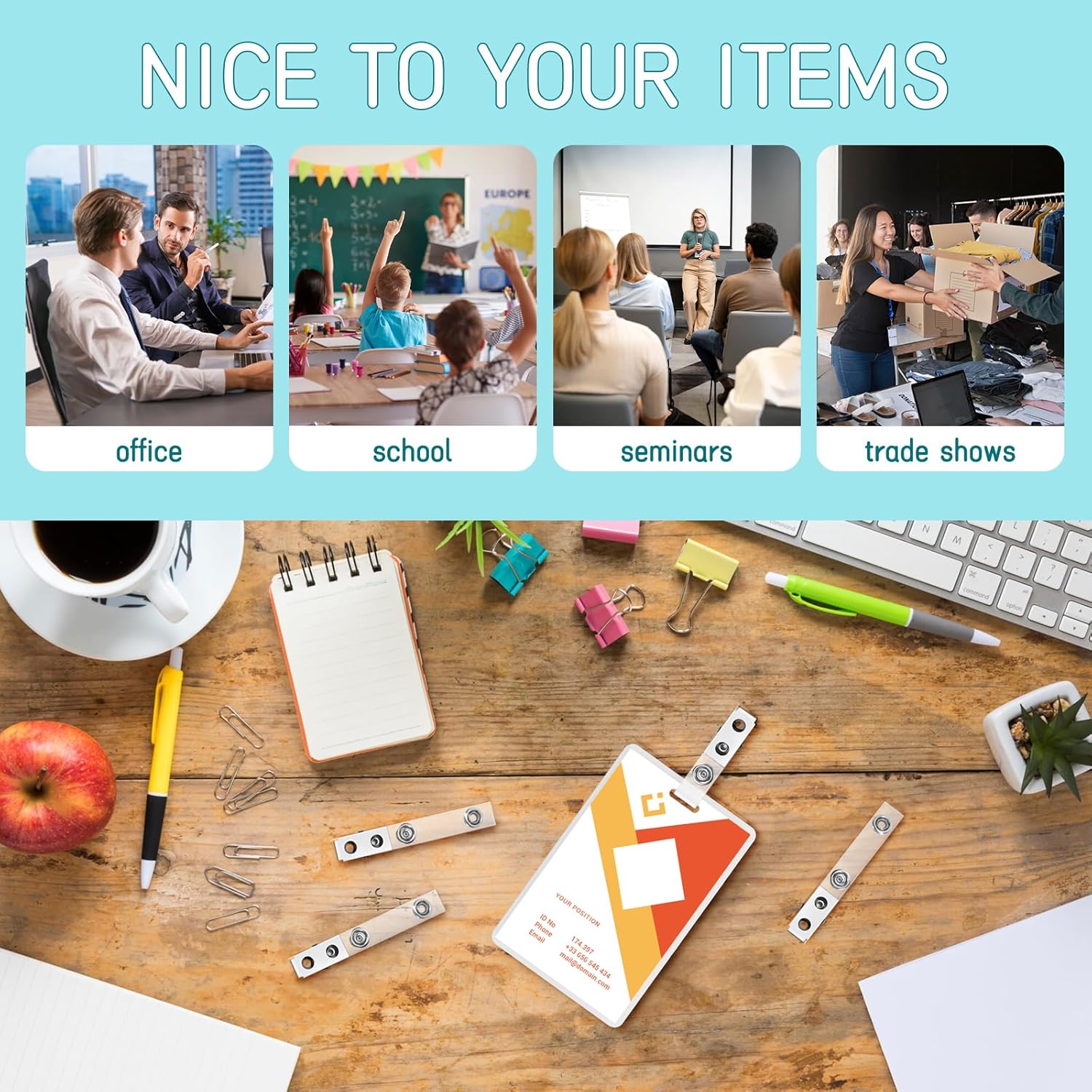 - Nice to your items: the heavy duty metal clips won't snag or starch your clothing and other fabric surfaces, nicely match your business shirt or suit; They are appropriate for conventions, seminars, office, trade shows, schools, security and more, proper for holding ID cards, business cards, name tags, badge holders, keys and so on
