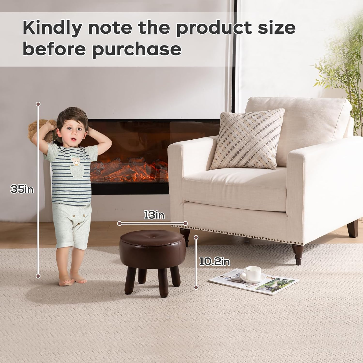 - 【Anti-Slip Design】- These leather foot stools small ottoman rubber legs come with dedicated felt pads to prevent scratches on floor and keep it from sliding.Wood leg with non-slip felt pad is quiet when moving, and can avoid leaving scratches on floor.The small footstool is perfect for small spaces and is compact enough not to get in anyone's way.