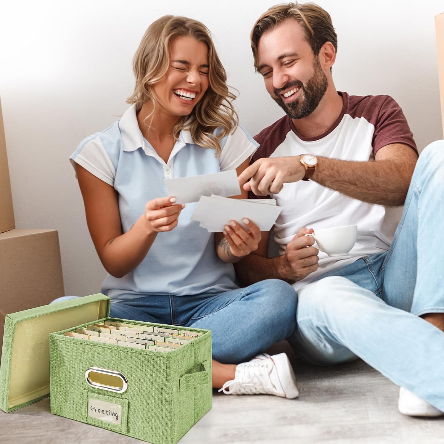 Vienrose Greeting Card Organizer 2 Pack, Storage Box with 40 Adjustable Dividers, Foldable Organizer Box Holds over 150 Cards, Storage Stickers Recipes Photos Envelopes Bills Vinyl Records, GrassGreen
