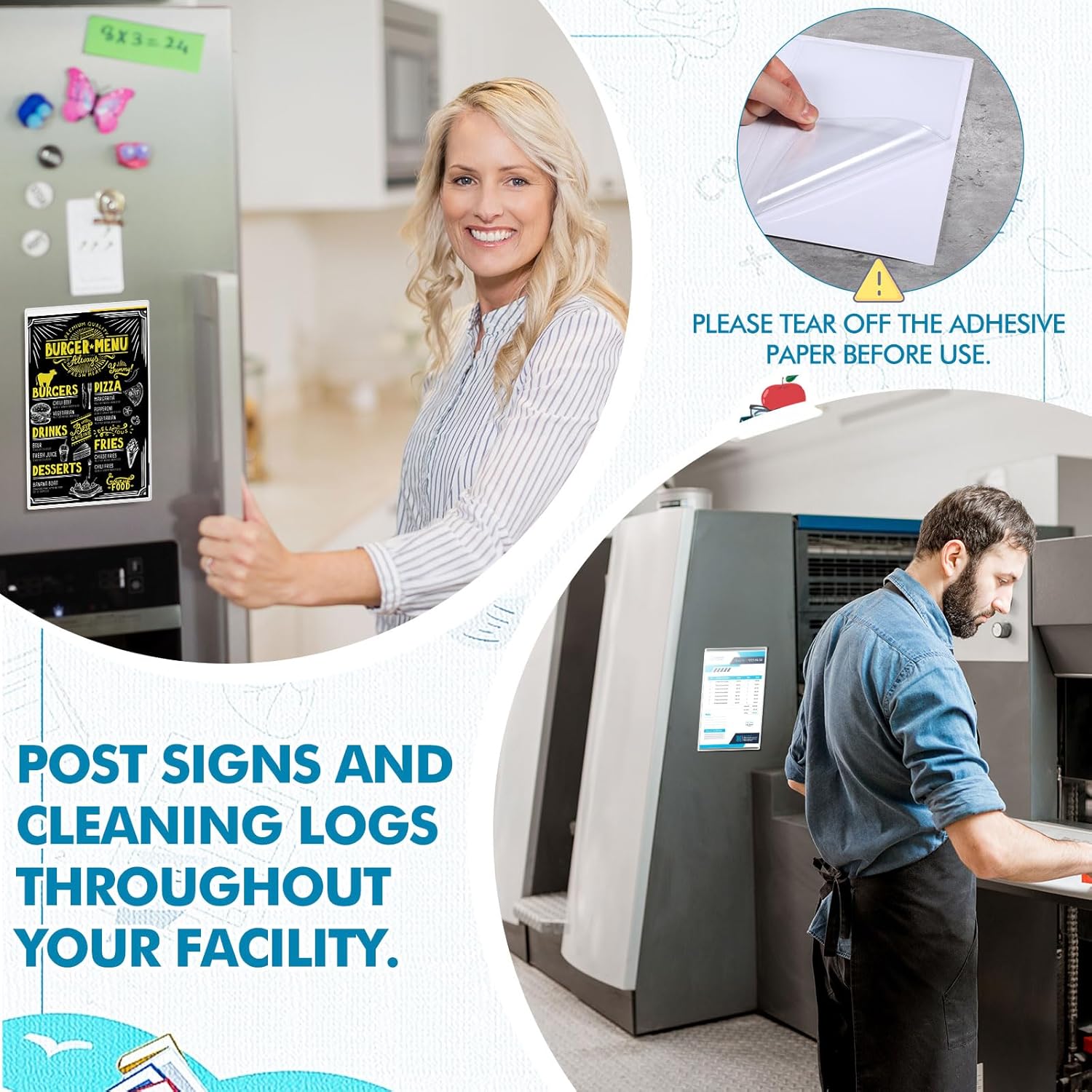 - Versatile: plastic adhesive sleeves can be adhered to any smooth and clean area such as desks, refrigerators, doors, bookshelves, cabinets and work boxes; You can use them to hold information sheets that need to be changed frequently, such as lunch menus, labels and calendars