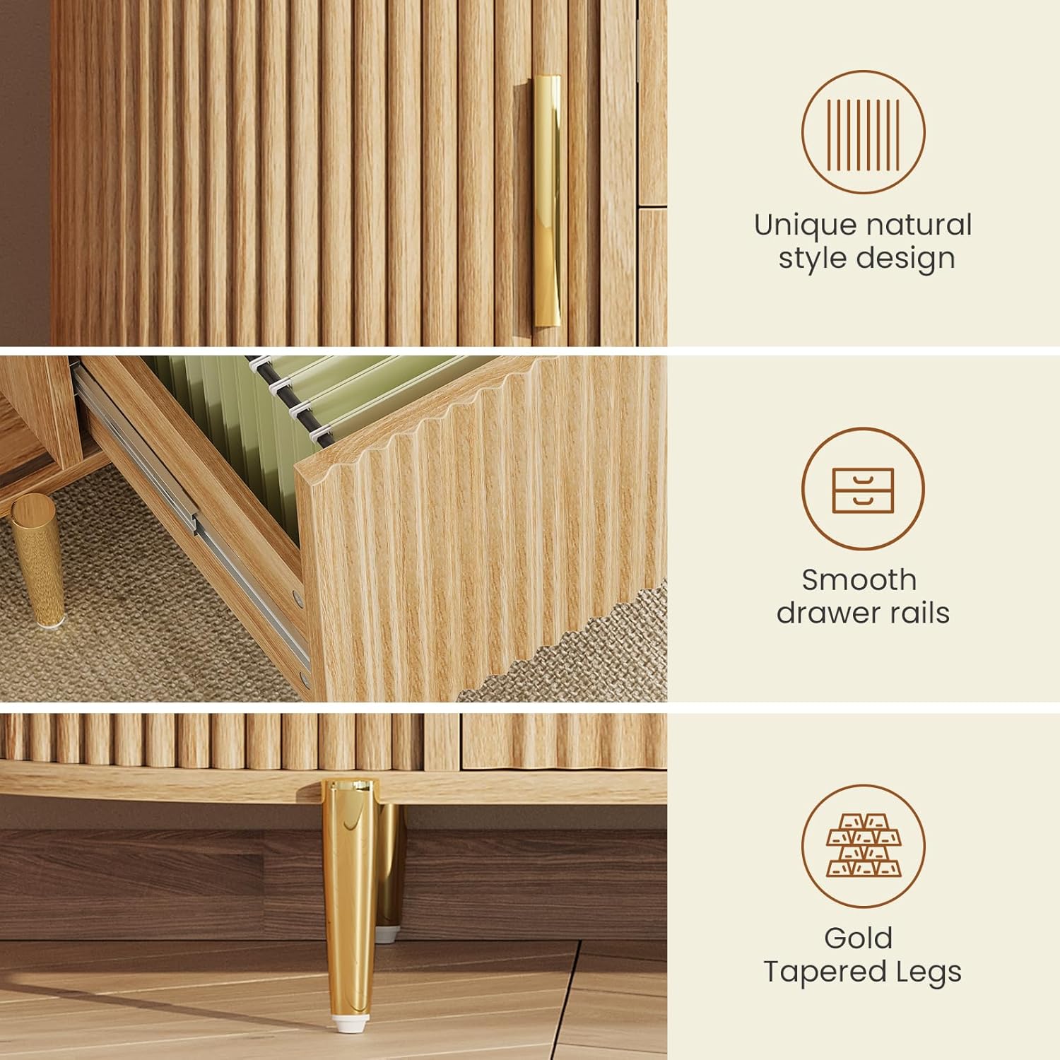 SEDETA 2 Drawer File Cabinet, 39.4" Filing Cabinet for Home Office, fit Legal/Letter/A4 Size, Modern Fluted Filing Cabinets with 2 Sliding Door Storage, Printer Stand, Natrual