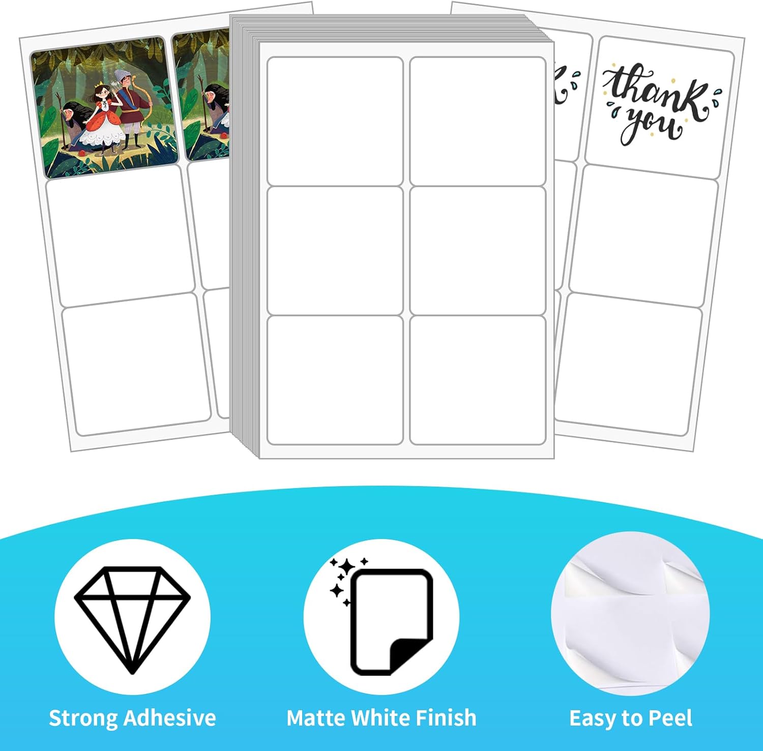 FungLam Printable Sticker Paper, 3-1/3" x 4" Shipping Address Labels 600 Blank Mailing Labels for Laser & Inkjet Printers, 6 per Page Label Stickers, 100 Sheets