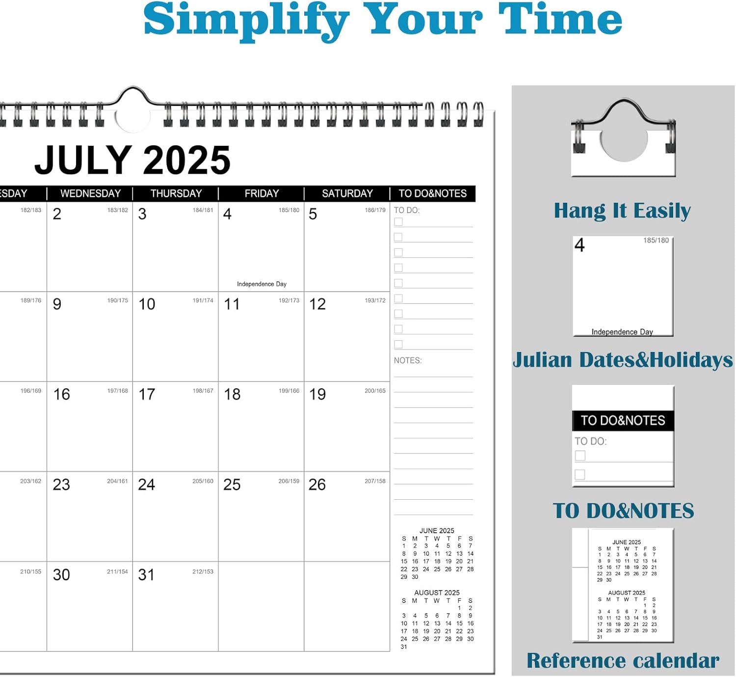- Ultra-Functional Daily Scheduling: The desk calendar 2025-2026 and wall calendar 2025-2026 both feature 1.8"x1.8" writing blocks with Julian dates, enabling detailed daily planning. Each monthly spread comes equipped with goal-setting sections, to-do lists, and a dedicated notes area, along with pre-printed holidays for quick reference. It's an ideal tool for managing appointments, meetings, and personal reminders, no matter if it's placed on your desk or hung on the wall.