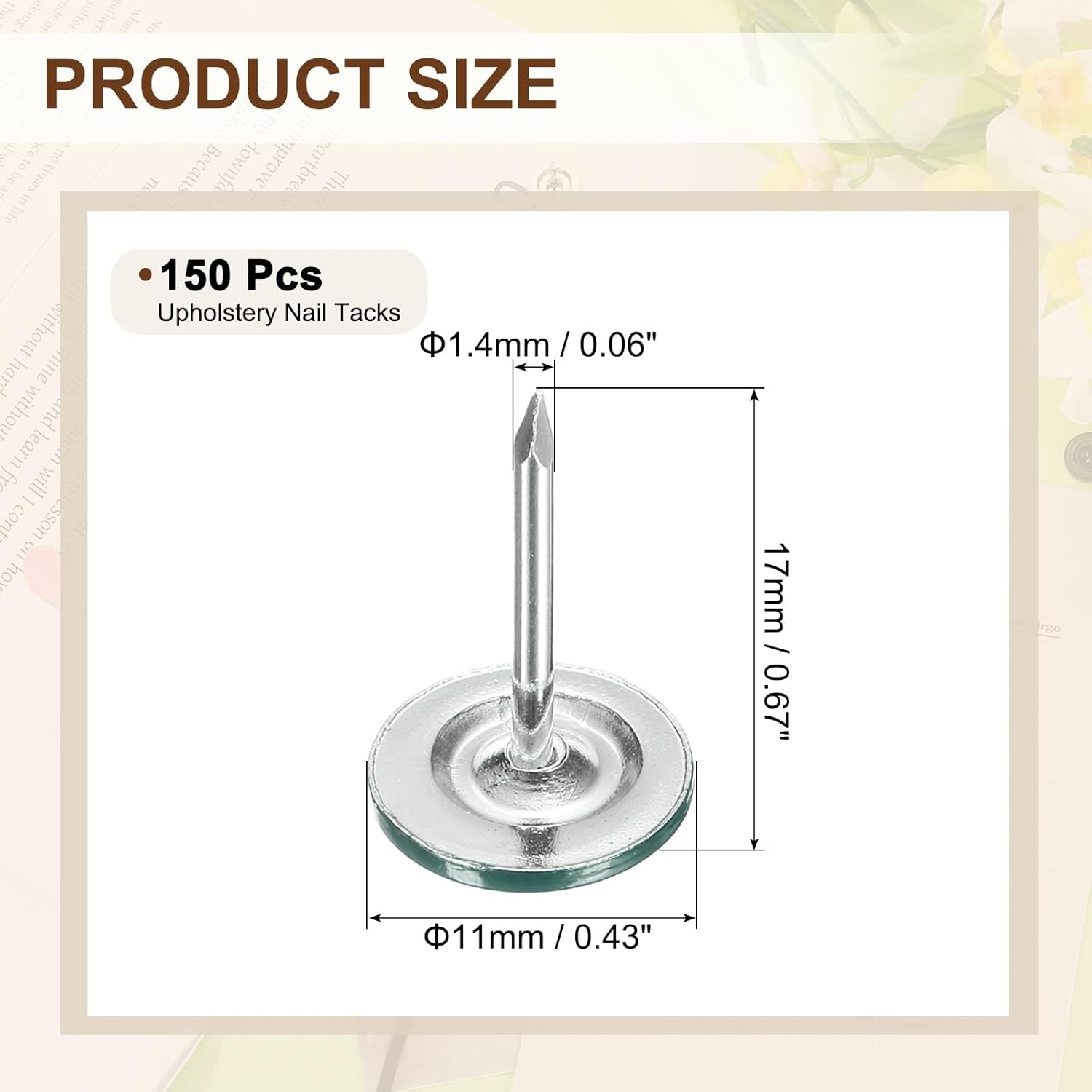- [Size & Quantity] - The package comes with 150pcs decorative upholstery tacks. Sufficient quantity to meet your different daily needs. The overall size of upholstery nails is about 11mm x 17mm/0.43-inch x 0.67-inch(D*H)