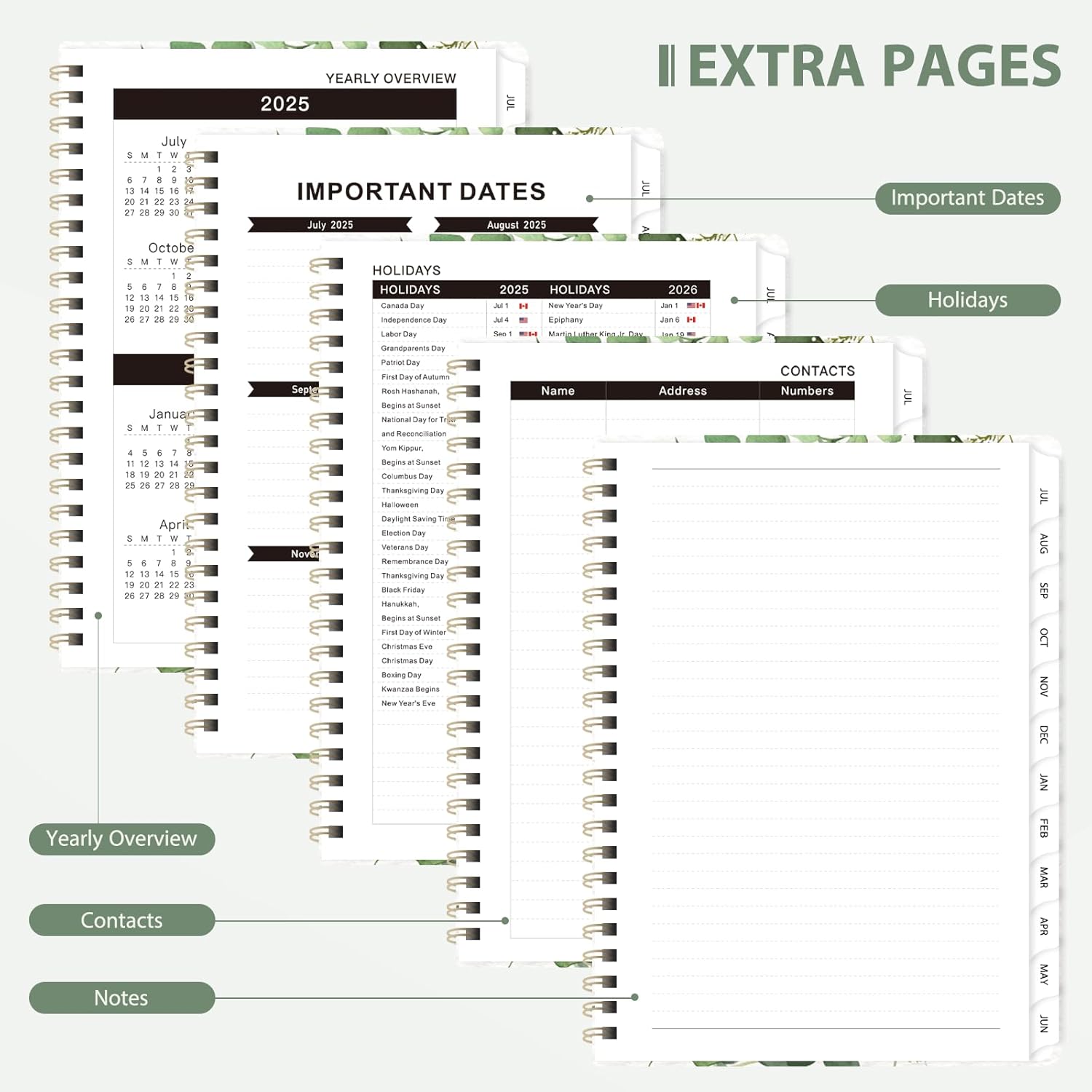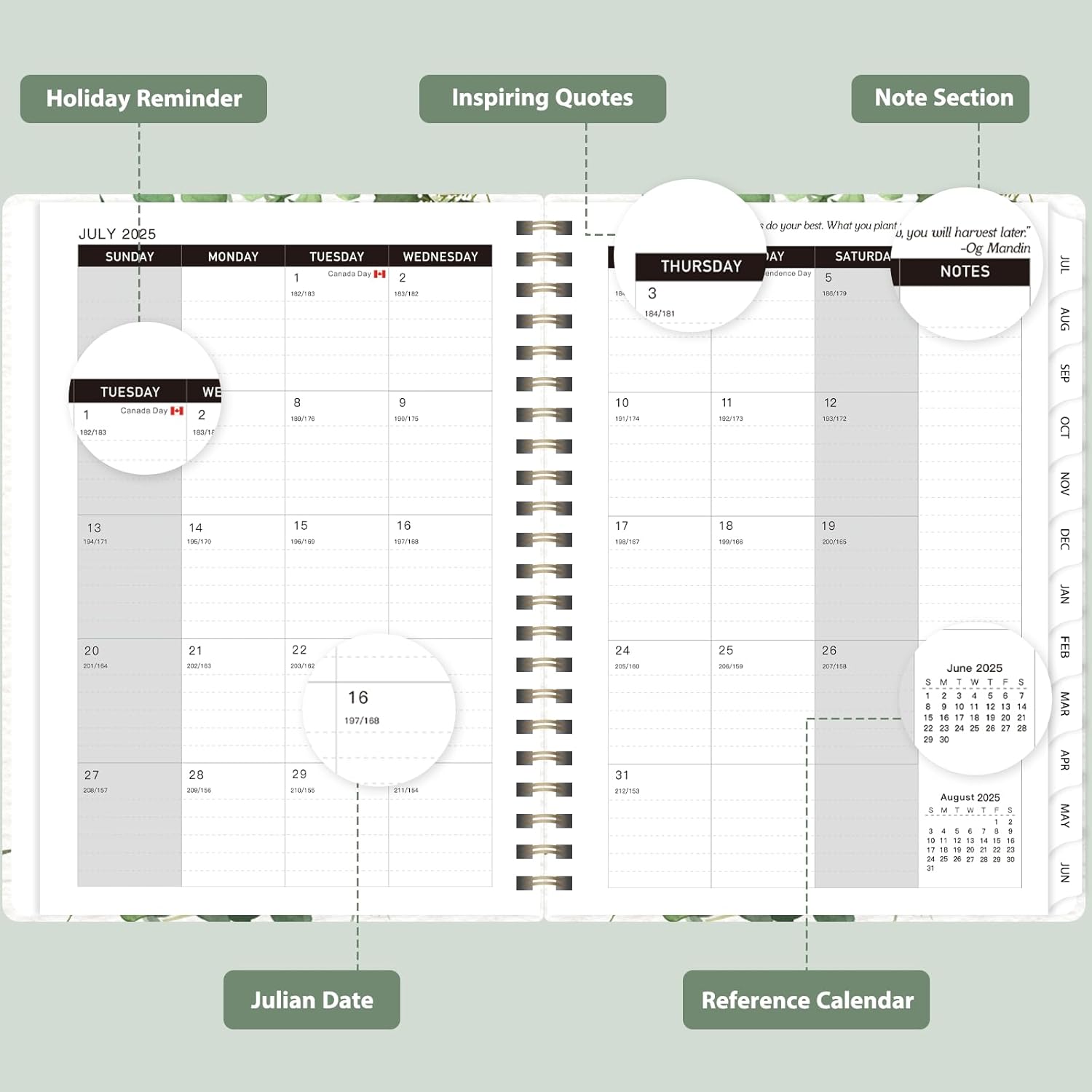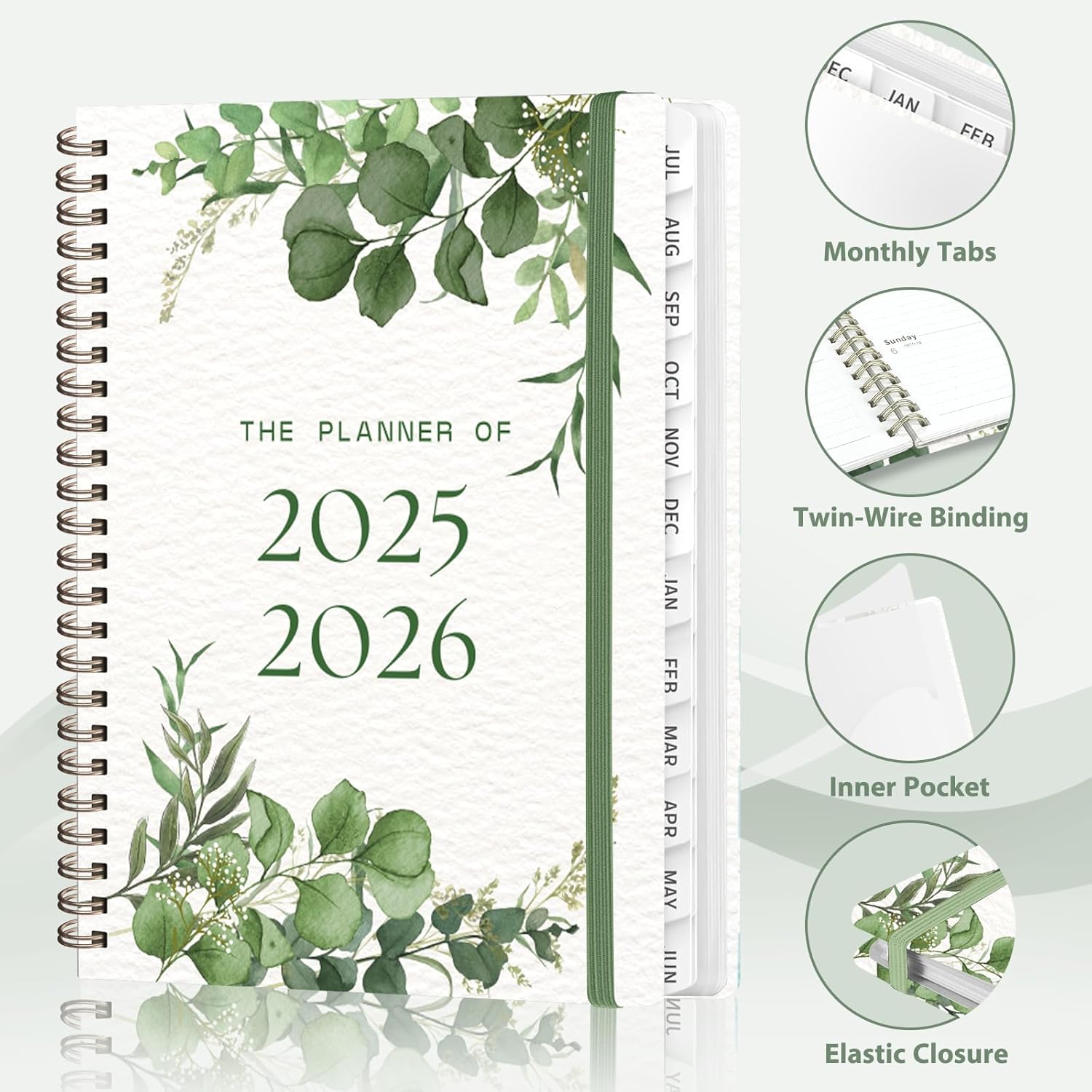 - [THOUGHTFUL DESIGN] – Printed on FSC-certified wood-based paper, our 2025-2026 calendar planner combines sustainability with smart organization. It features an elastic closure to keep it securely closed, monthly tabs for easy access, and a clear double-sided pocket for extra storage. Plus, each monthly page includes an inspiring quote to keep you motivated and focused.