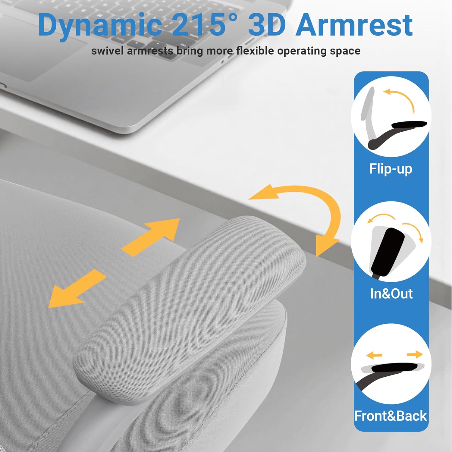HYLONE Heavy Duty Office Chair, 5" Thickened Seat Ergonomic Desk Chair with Adjustable Armrests, Home Office Computer Chairs for Long Hours Mesh Executive Chair(Grey)