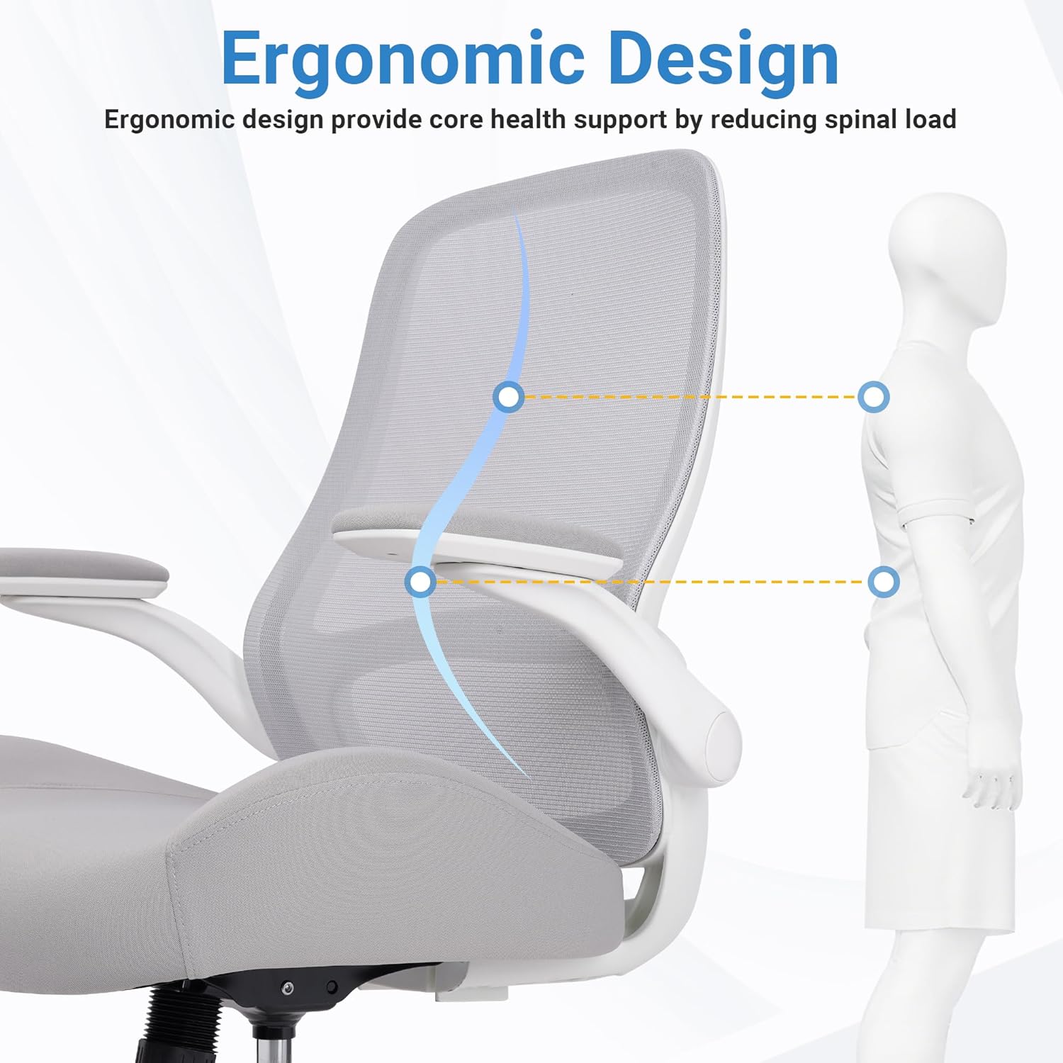 - Ergonomic Design--Relax Yourself: HYLONE reliable ergonomic office chair provides 5 supporting points(head/shoulder/back/ hips/ hands) and proper lumbar support, allowing you to maintain the correct sitting posture for a more comfortable experience, releasing pressure and relieving shoulder and neck pain from long hours of work