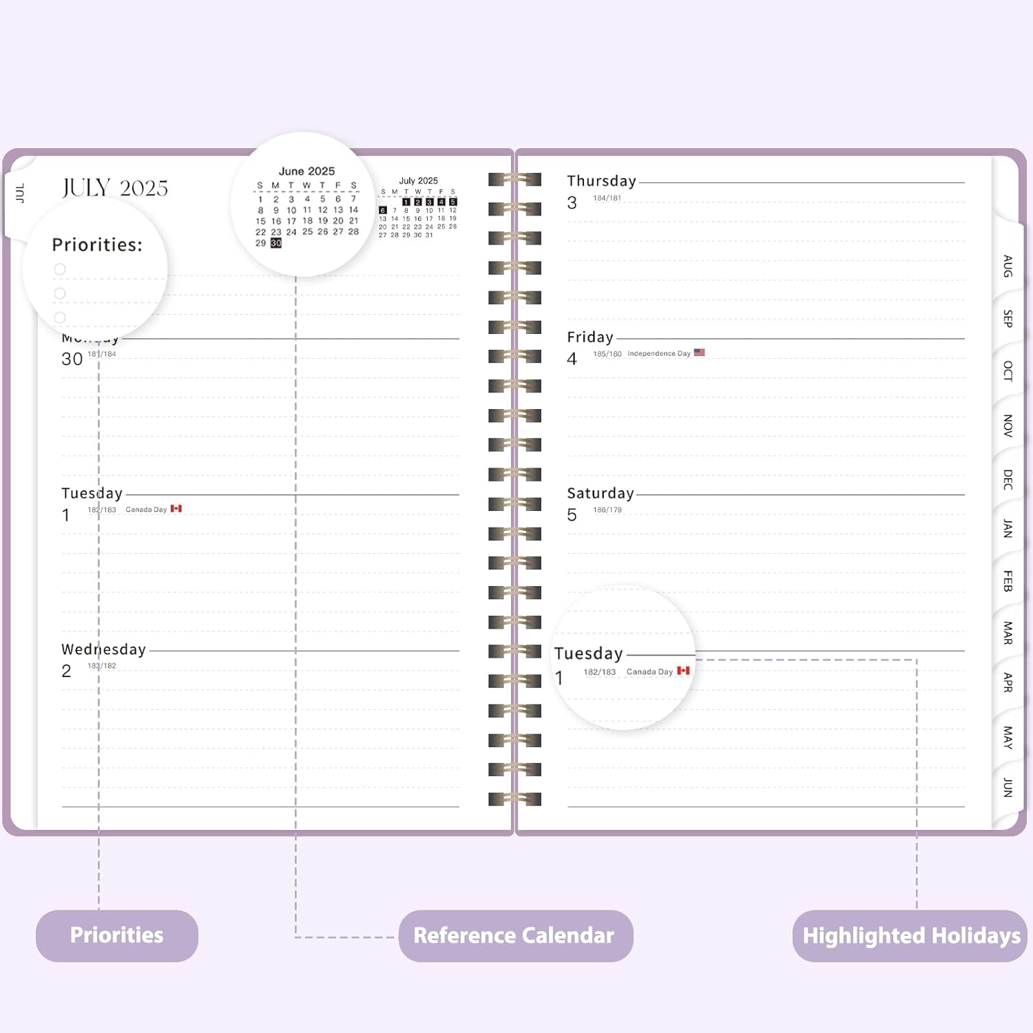 Planner 2025-2026 for Women & Men, Weekly and Monthly Calendar Notebook (July 2025 - June 2026), Hardcover Spiral Bound School Teacher Student Planner with Tabs, Inner Pocket, A5 (6.3" x 8.5")