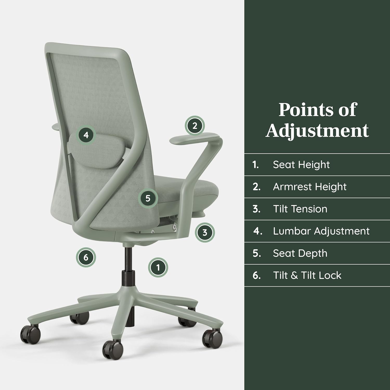 - ADJUSTABILITY: The Branch Verve Chair offers six points of adjustment including tilt and tilt lock, seat height, seat depth, armrest height, lumbar height, and tilt tension, making it an ideal executive desk chair.