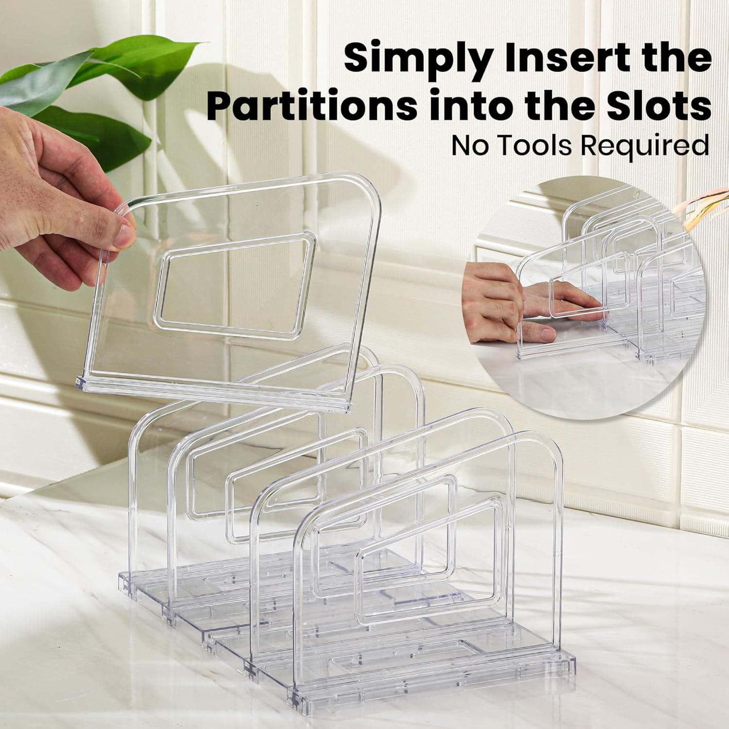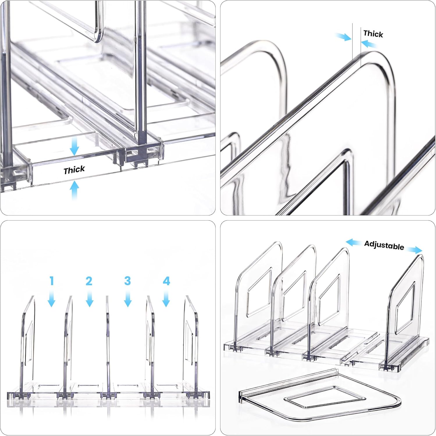 File Organizer, Acrylic File Folder Organizer File Sorter, Plastic Vertical Book Dividers for Magazine Mail Letter Paper, Desktop Organizers for Office, Classroom & Home(4 Sections, 2 Pack)