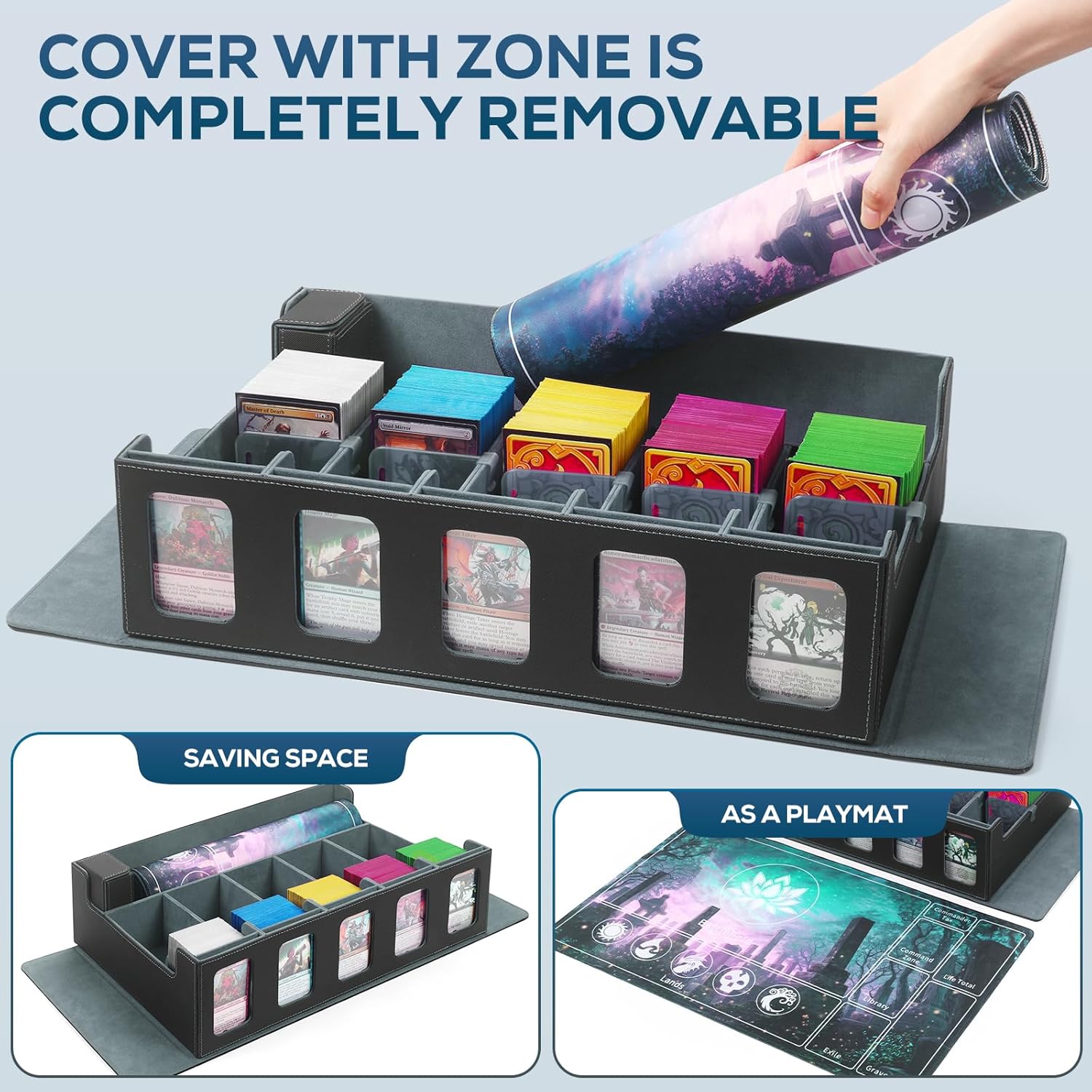 - 【Customized for Professional Gamers】- The STTRBOX MTG Commander Display Deck Box is designed for Commander players. Designed to hold 3900+ cards in 5 rows, the card box is ideal for organizing Commander decks as the card box design reserves space for players to place their personalized play mats. Each row of the card box features a side window for your Commander or avatar to quickly and easily identify each deck in the box.