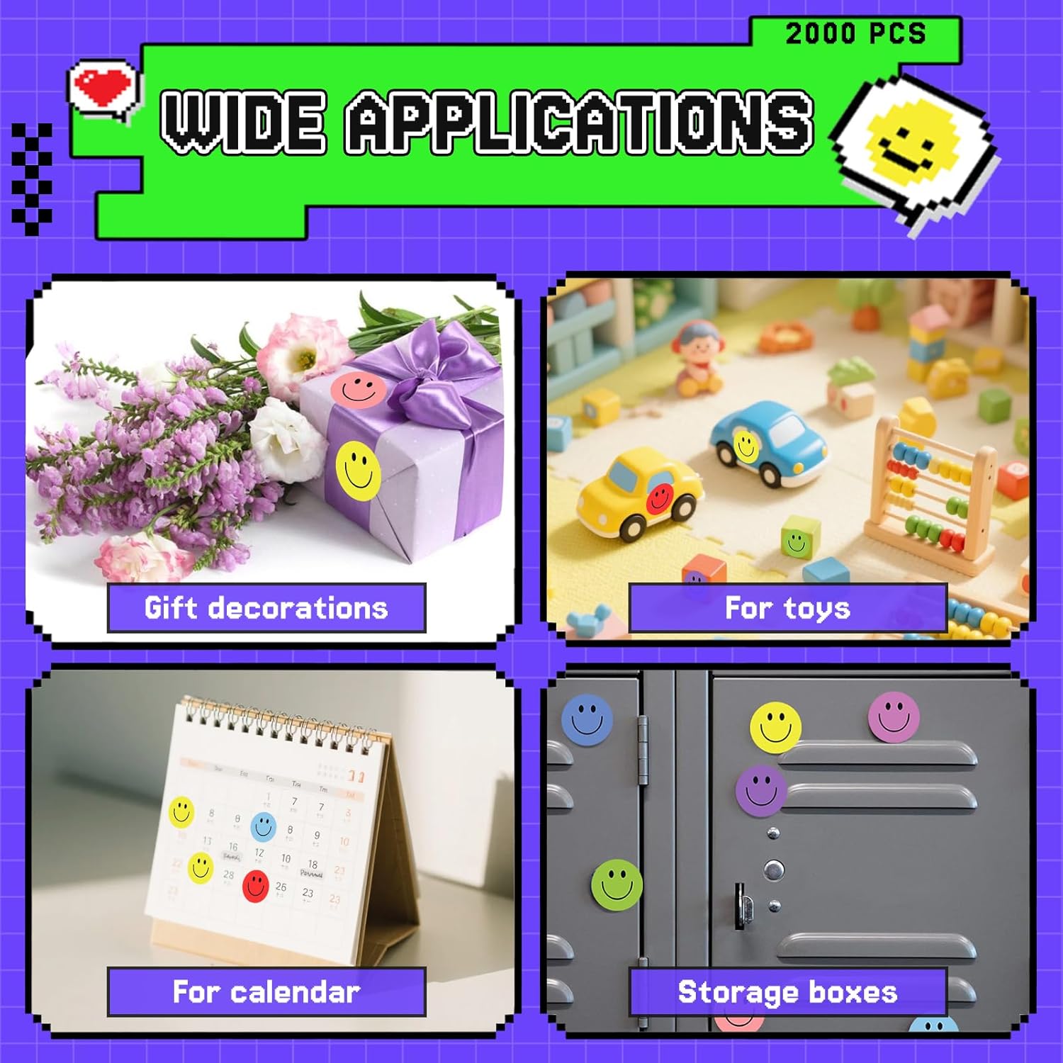 - SUFFICIENT QUANTITY: You will receive 4 rolls of colorful smiley face stickers, 500 sheets per roll, 2000 sheets in total.