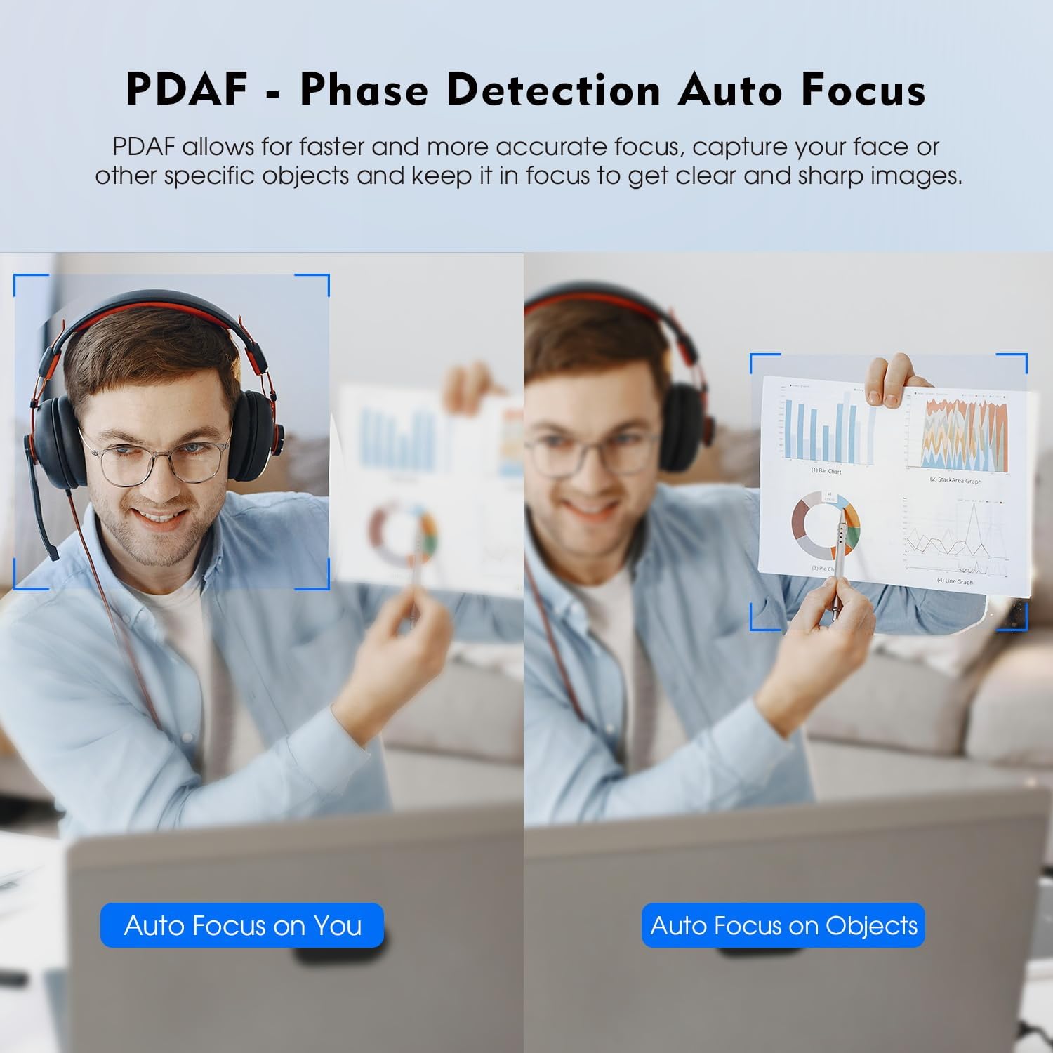 - 【Advanced PDAF Auto-Focus】Phase Detection Auto Focus, allows for more faster and precise auto focus, captures your face or the other specific objects when you close to the camera, and always keep you in focus to get clear and sharp images, great feature for live-streaming and video calling.