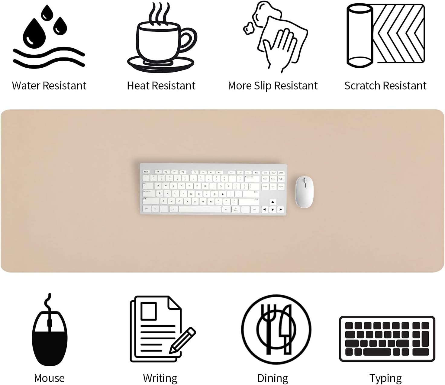 Bloss Extra Large Leather Desk Ma, 47.2" x 16.9" Non-Slip Dressing Table Cover Protector, Waterproof Student Study Desk Mat, Home Office Decor - Beige