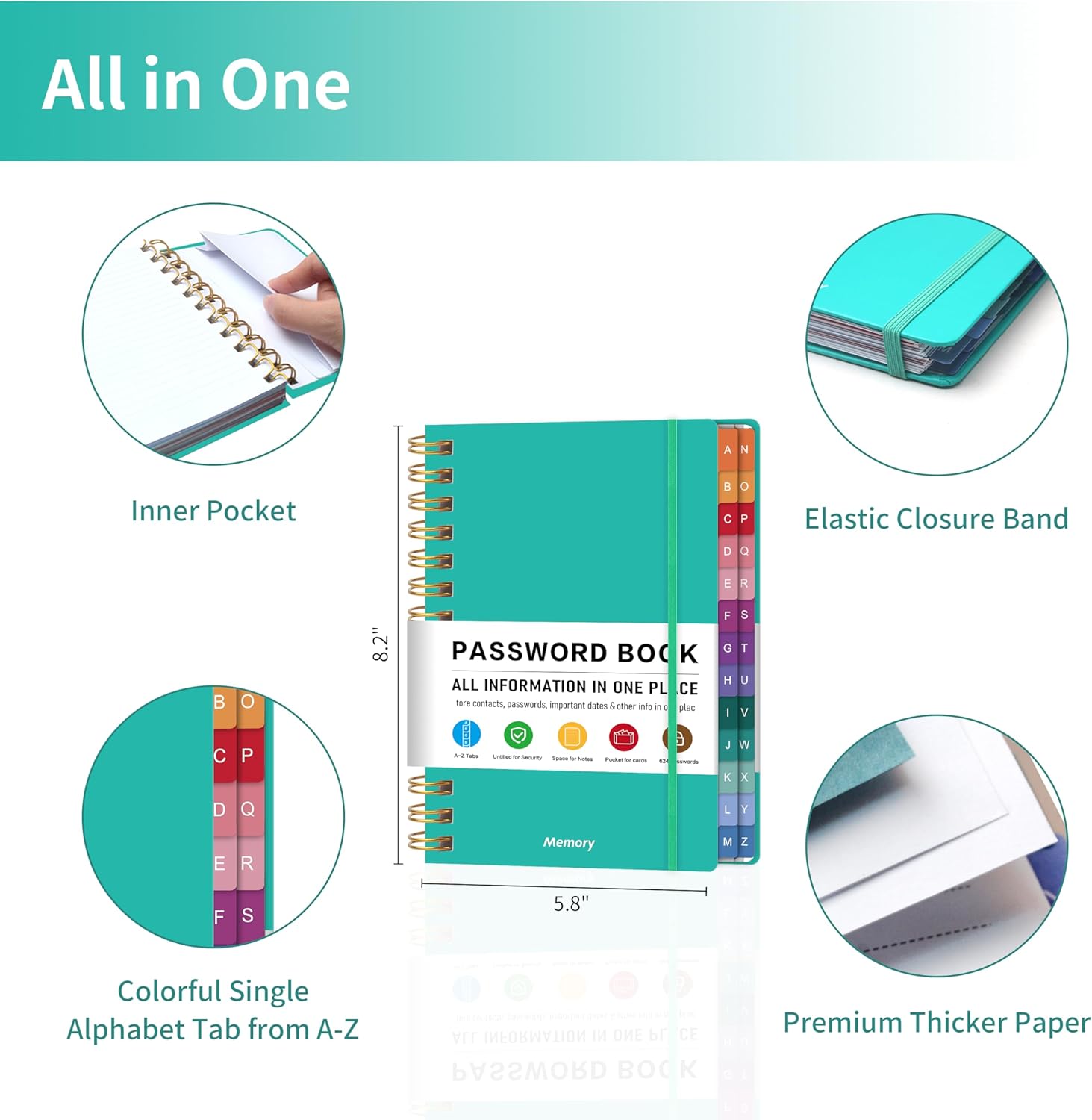 - All-in-One Password Keeper Book with Colorful Tabs: This password keeper book features easy-to-use alphabetical tabs for quick access to up to 450 logins, making it perfect for those who need a reliable and organized way to store passwords(Note: There is no password page following the Z label of the product. You can write it on the NOTES pages)
