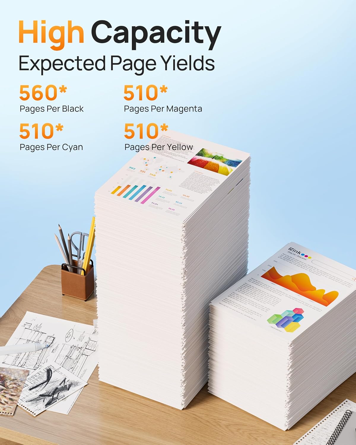 - High page yield: up tp 560 pages per black LC401XL ink cartridge for brother printer, 510 pages per color LC401XL ink cartridge for brother printer (at 5% coverage)