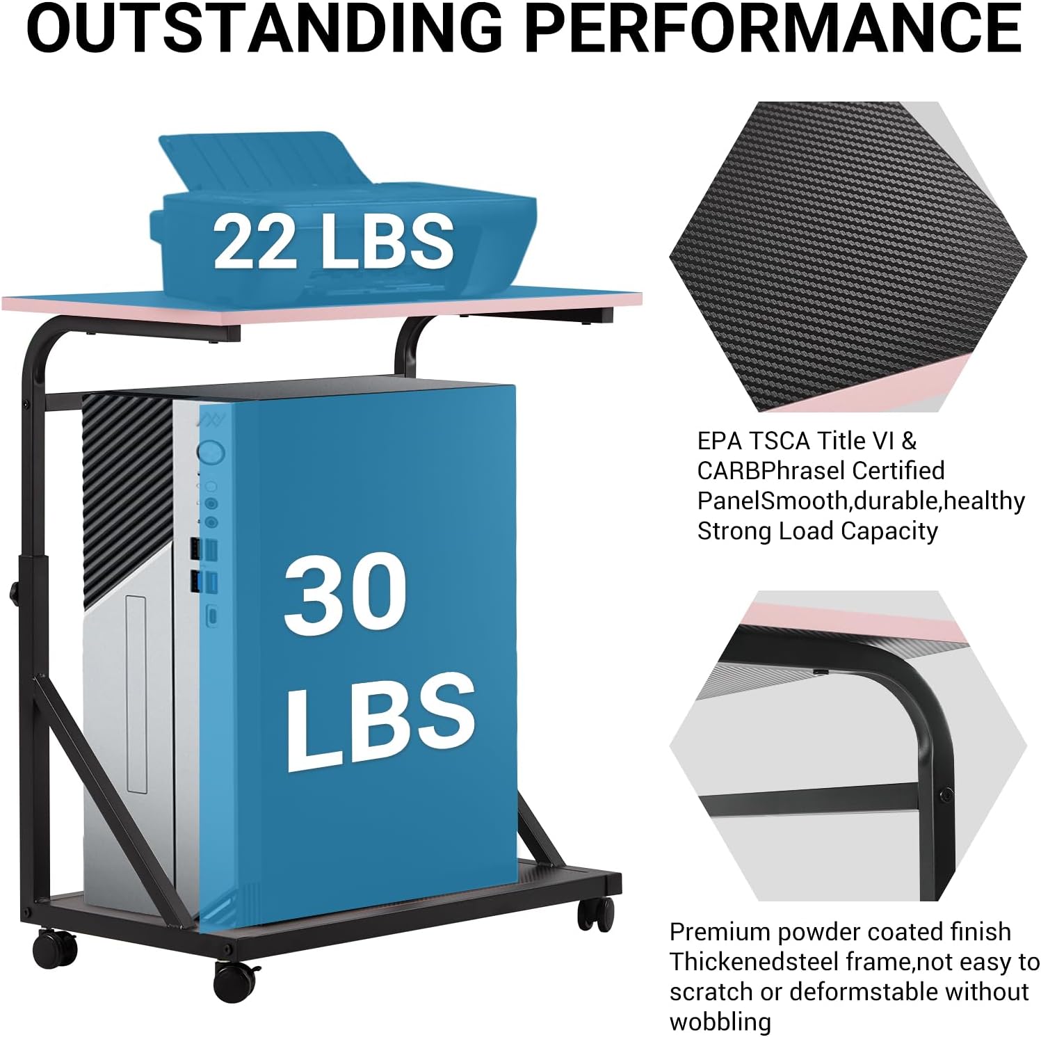- With its efficient two-layer design and back nail board, the PC stand can also be used as a bedside table, a printer stand with wheels, a covered table, a service cart with wheels, and a mobile desktop workstation. It even includes hooks and nail plate accessories, add them to your shopping cart immediately.