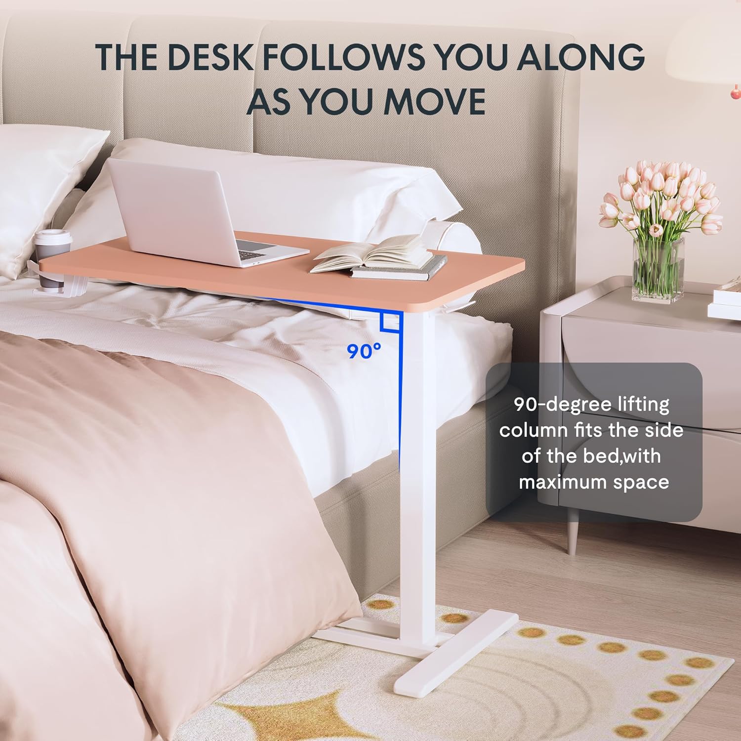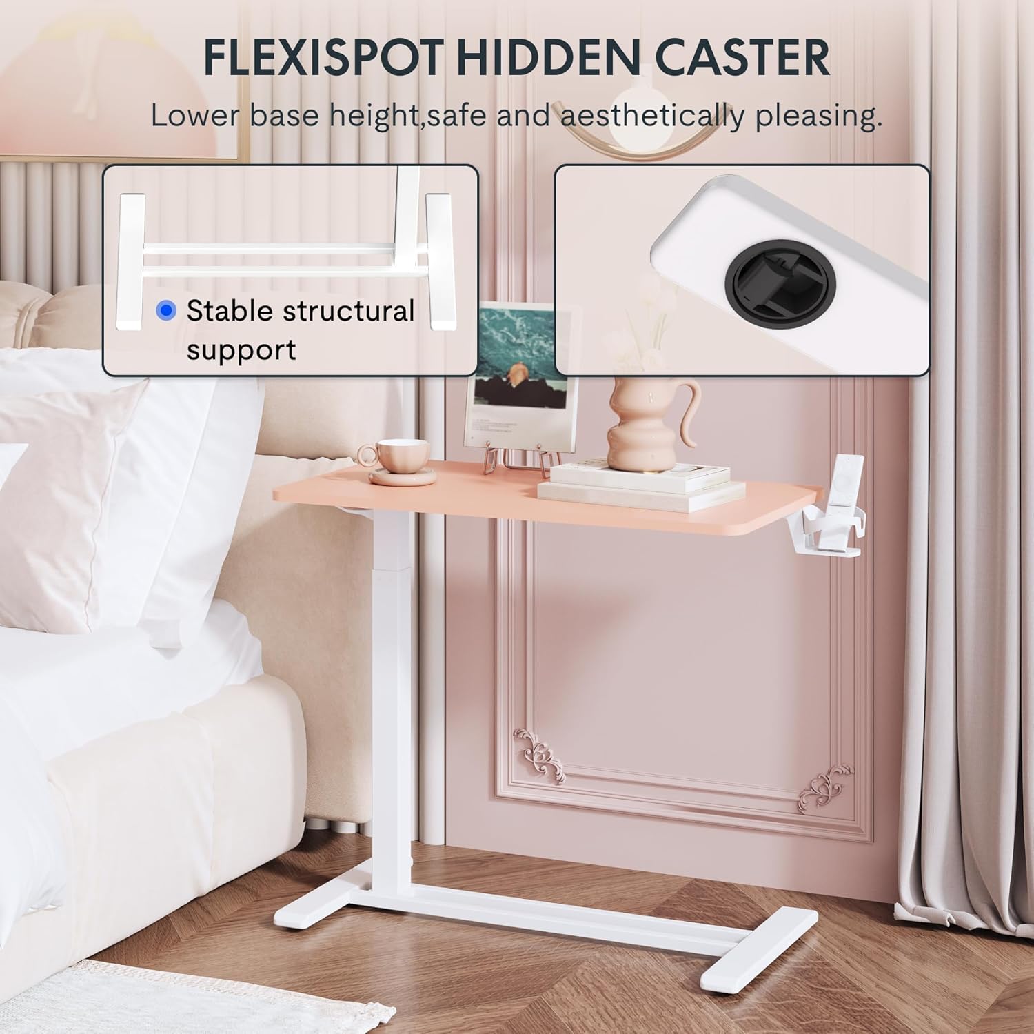 FLEXISPOT Mobile Standing Desk with Wheels Pneumatic Laptop Desk Rolling Computer Cart Movable Height Adjustable Small Sit Stand Computer Workstations Home Use(31.5" W x 17.7" D,Pink