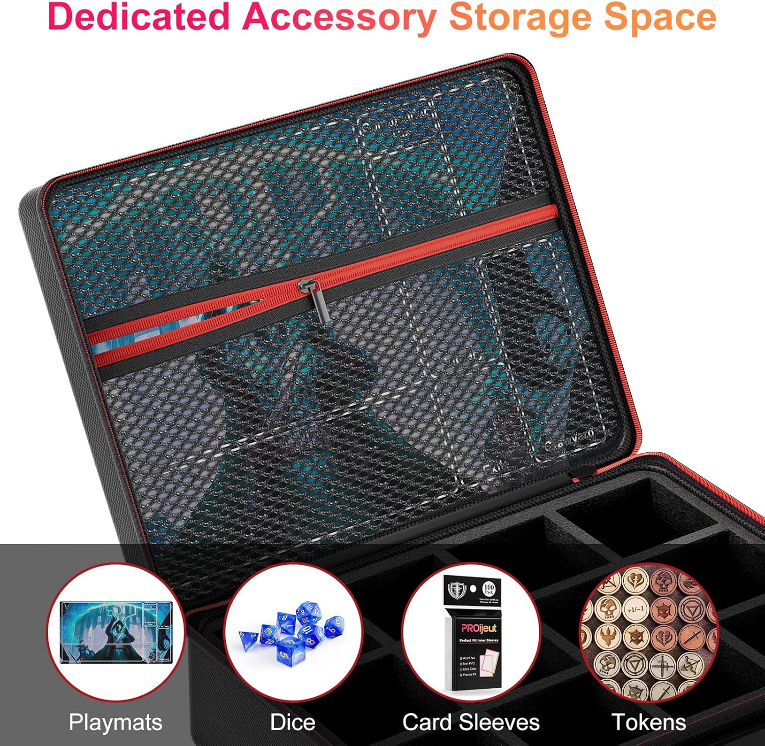 - [Premium Card Case Set] The Proijeut Card Case Set includes 12 acrylic card deck boxes and a 12 slot portable case. The commander deck box set has 12 dividers for efficient organization. Designed to hold over 1200+ double-sleeved cards in total, it is perfect for TCG players, ensuring your cards remain well-protected and neatly arranged.