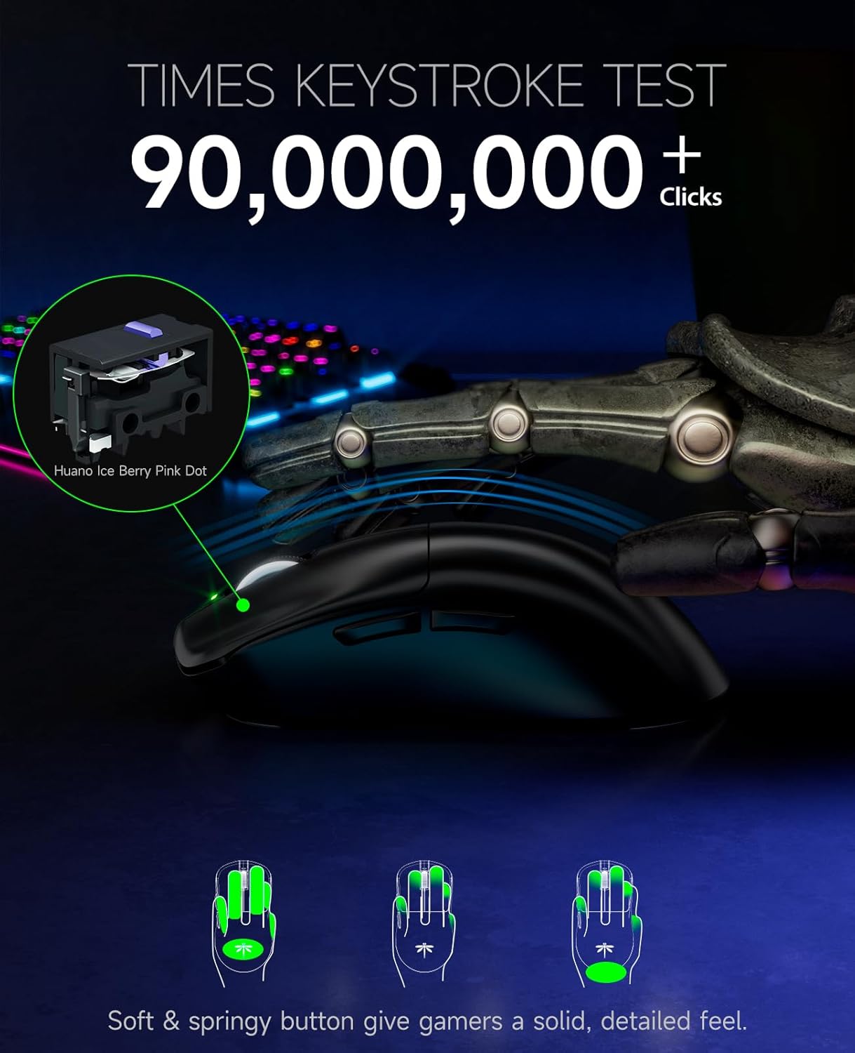 - Professional Gaming Mouse: Gaming Mouse features 26,000 DPI, over 650 IPS, 50G accelerator. Paired with 4K receiver(sold separately), an ultra-responsive 4000Hz polling rate plus high-precision PixArt PAW3395 sensor — quadrupling traditional 1000Hz mice for near-zero latency and ultimate tracking accuracy.