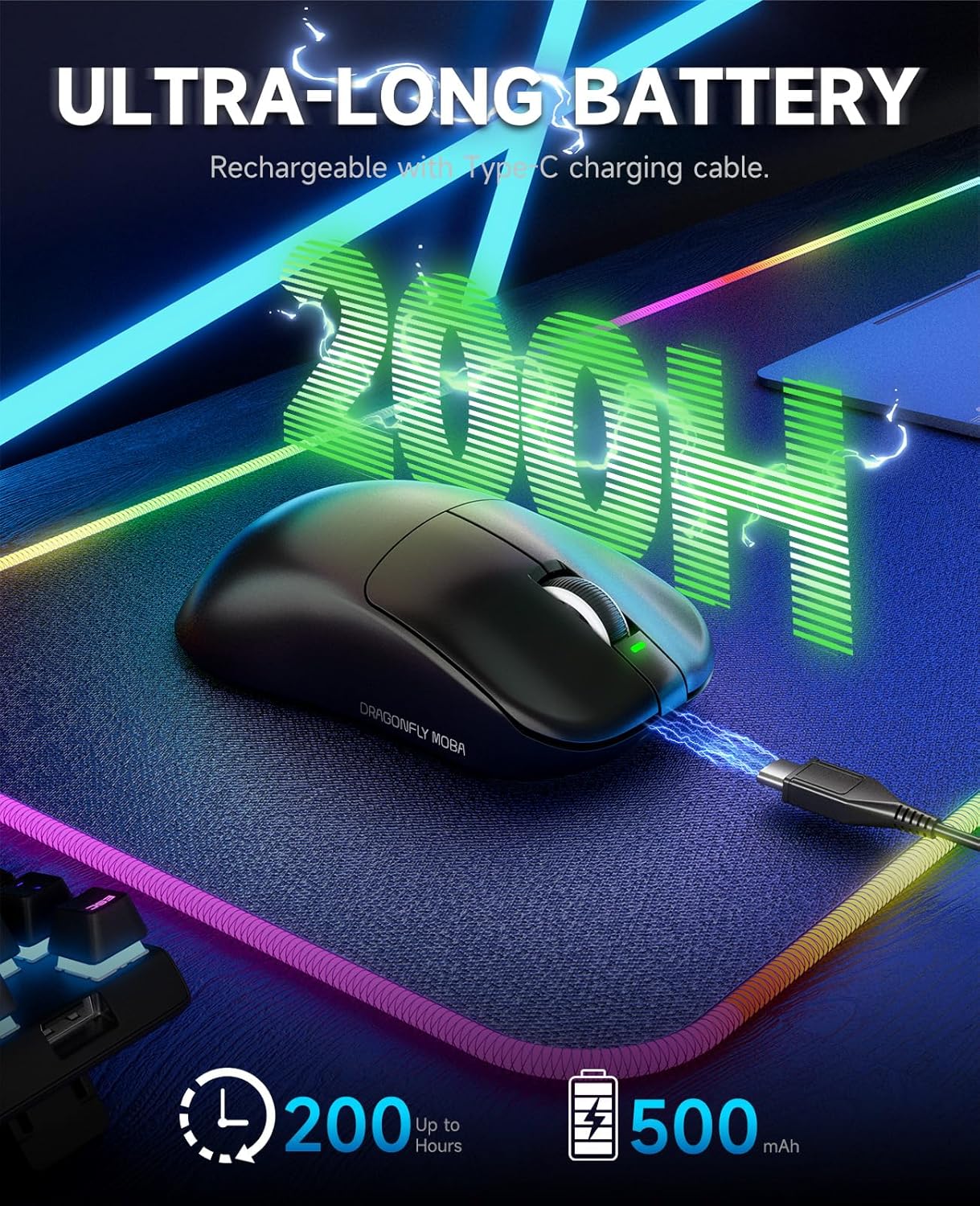 - Smooth PTFE Mouse Feet: Dragonfly F1 Pro mouse features our custom high-precision optical sensor and zero-additive PTFE feet, gift with an anti-slip grip sticker — delivering smooth gliding, precise tracking, and accurate control across a variety of surfaces.