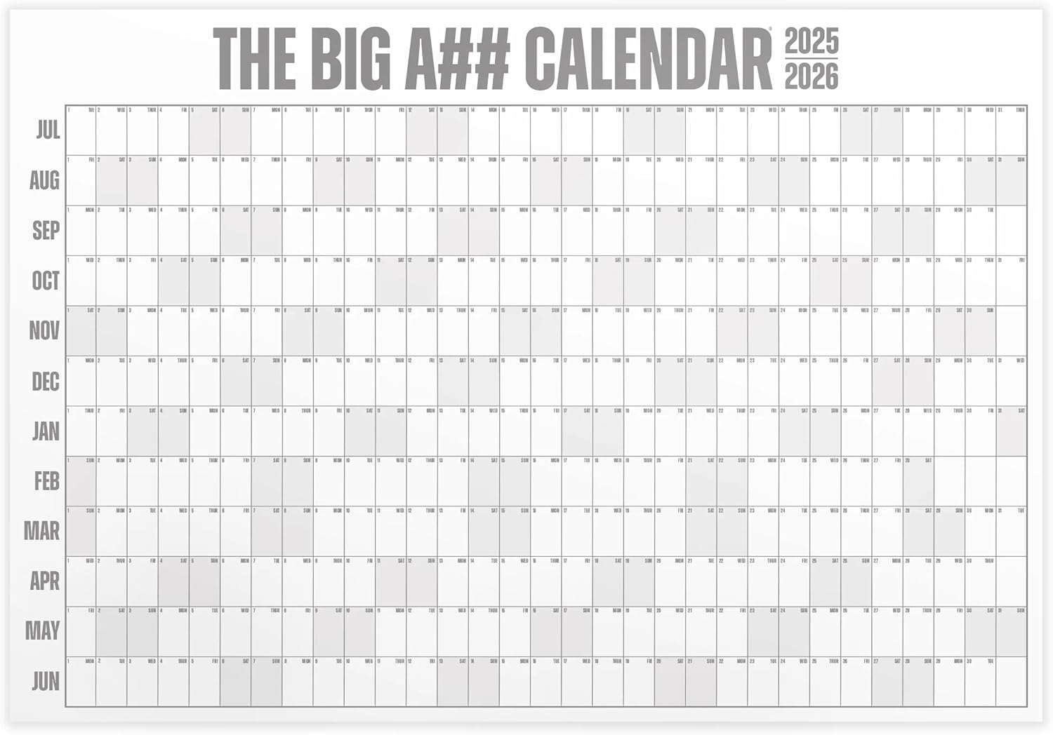 The Big A## Calendar Mid-Year Wall Planner – July to June Dry-Erase – Includes 1 Markers & 100 Labels – Lightweight, Easy to Hang Yearly Planner – Plan Goals & Adventures – Gray, 4’x3’