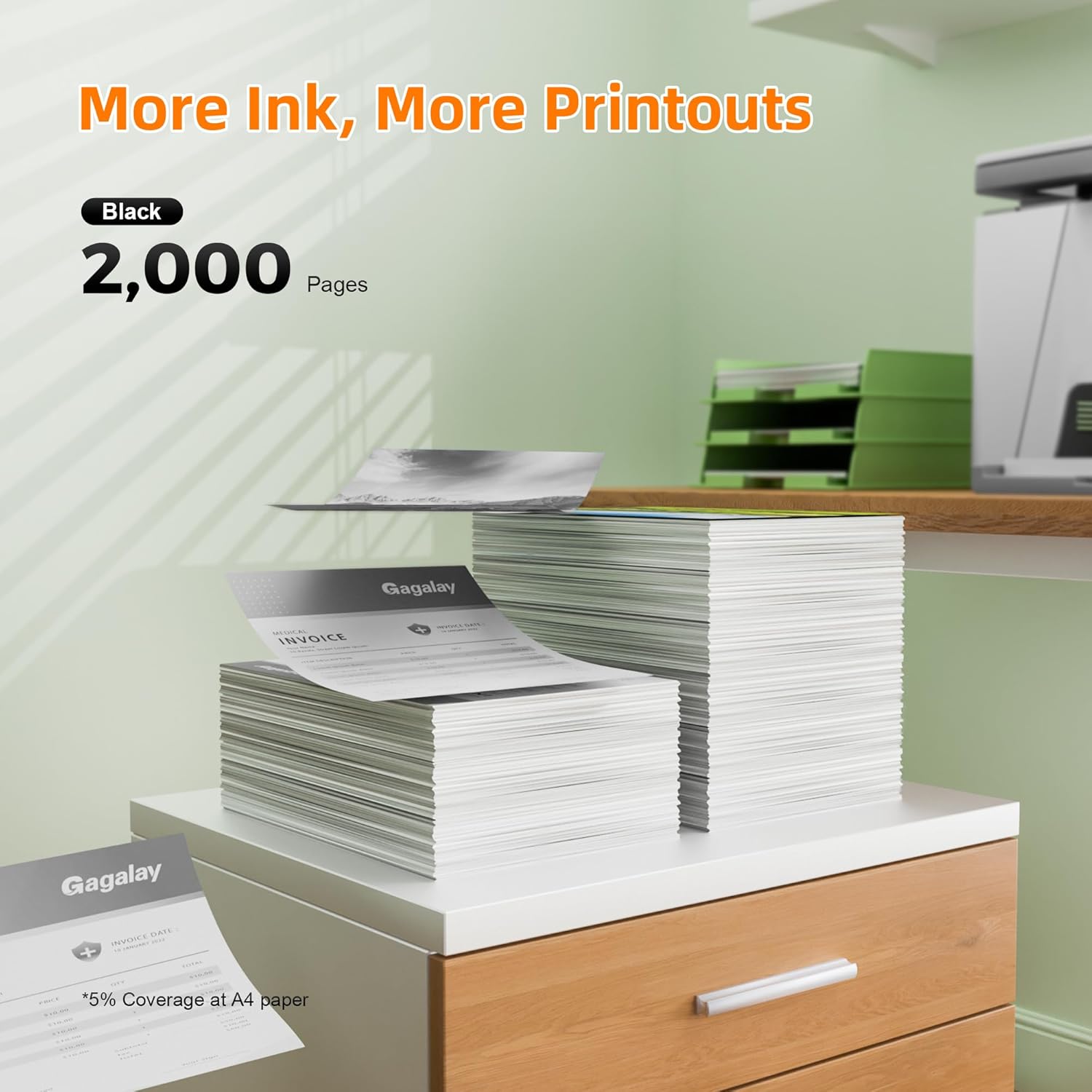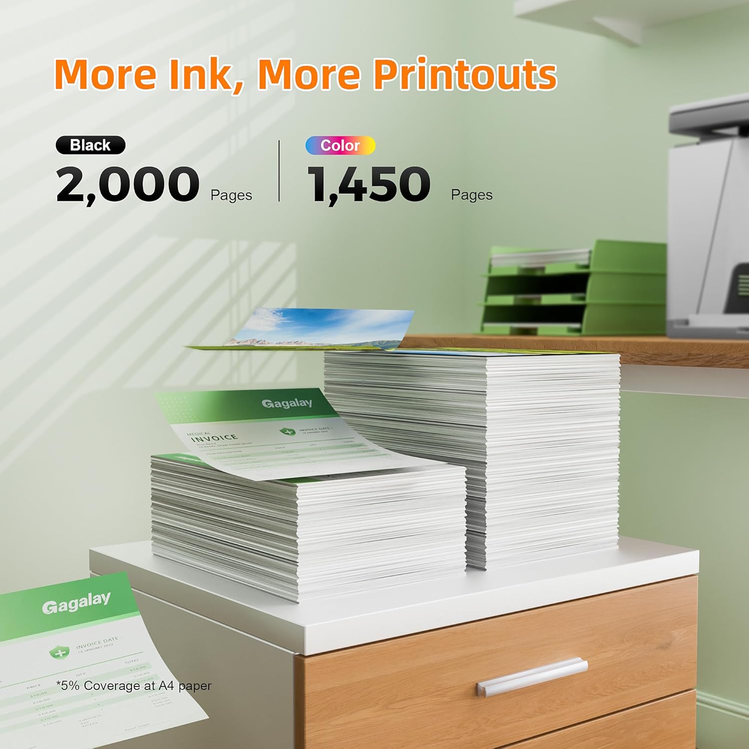 - Page yield - Print More with XL: Up to 2,000 pages per ink 952XL Black, 1,600 pages per 952XL Cyan Magenta Yellow Color Ink Cartridges. (At 5% Coverage of A4 Paper)
